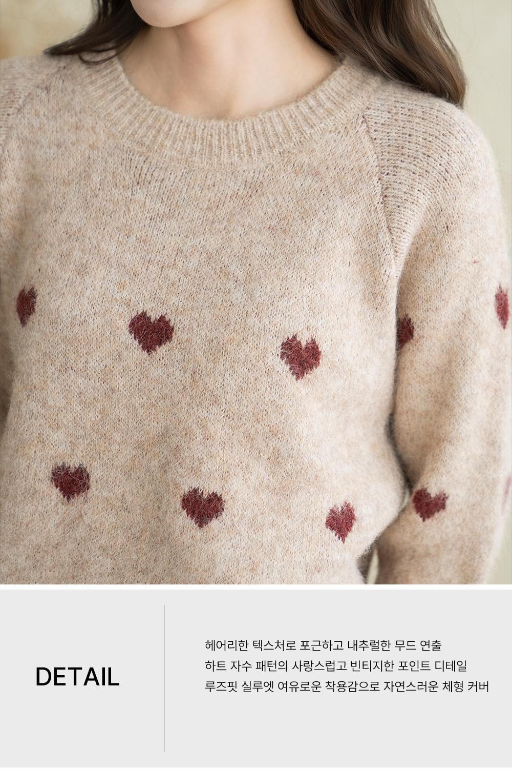 • [Natural Poem] Hairy Heart Knit - KN2510011 -