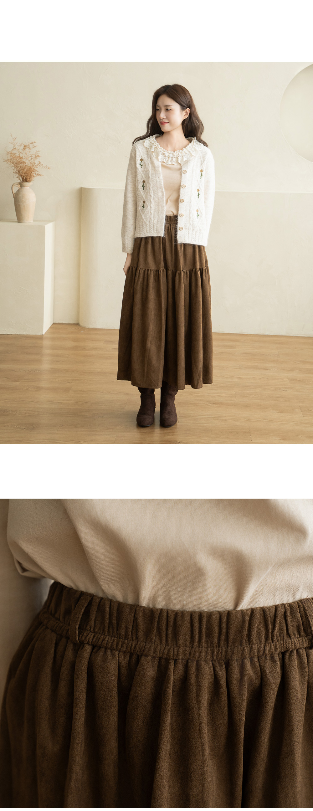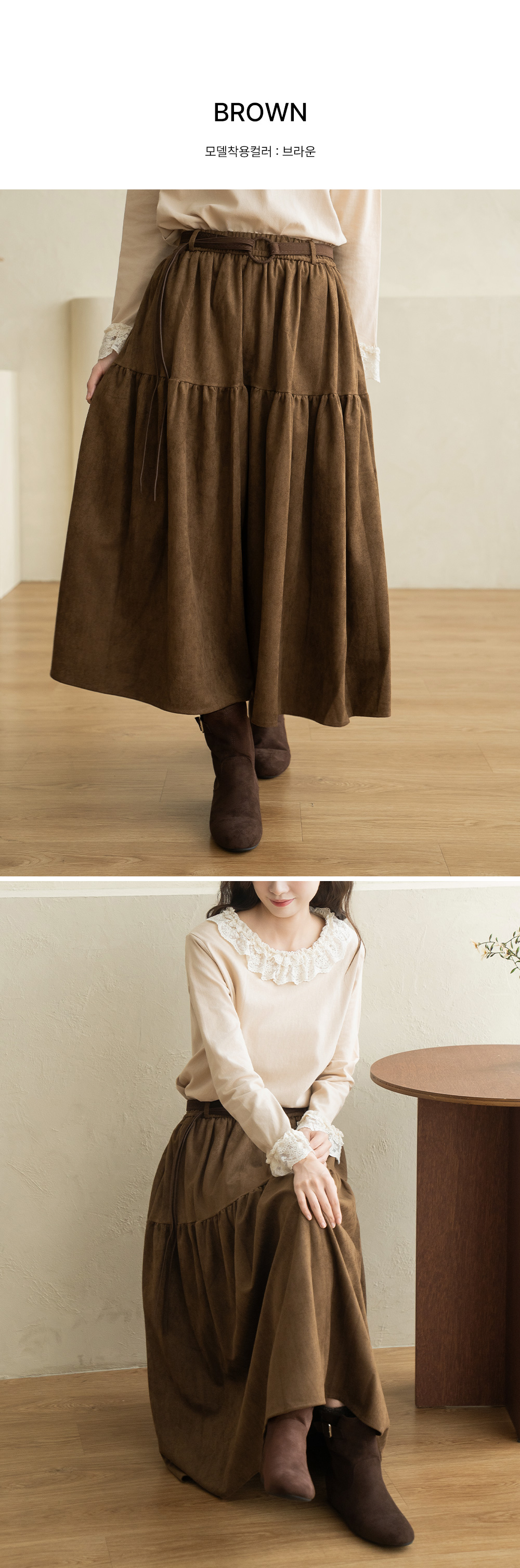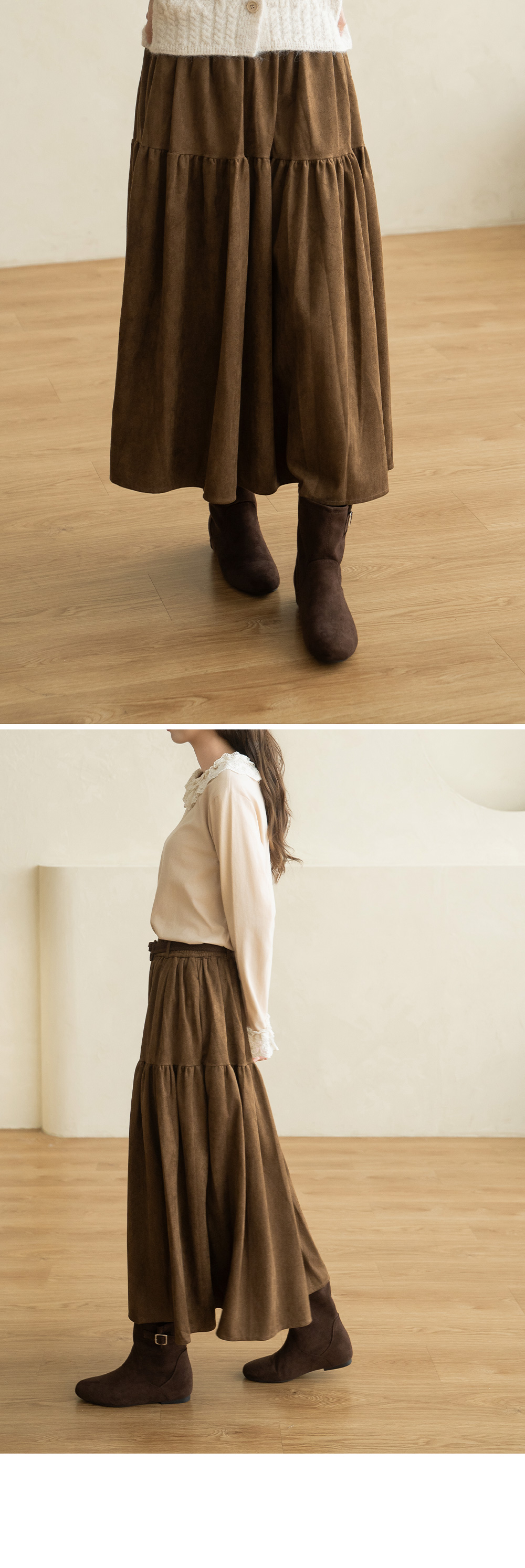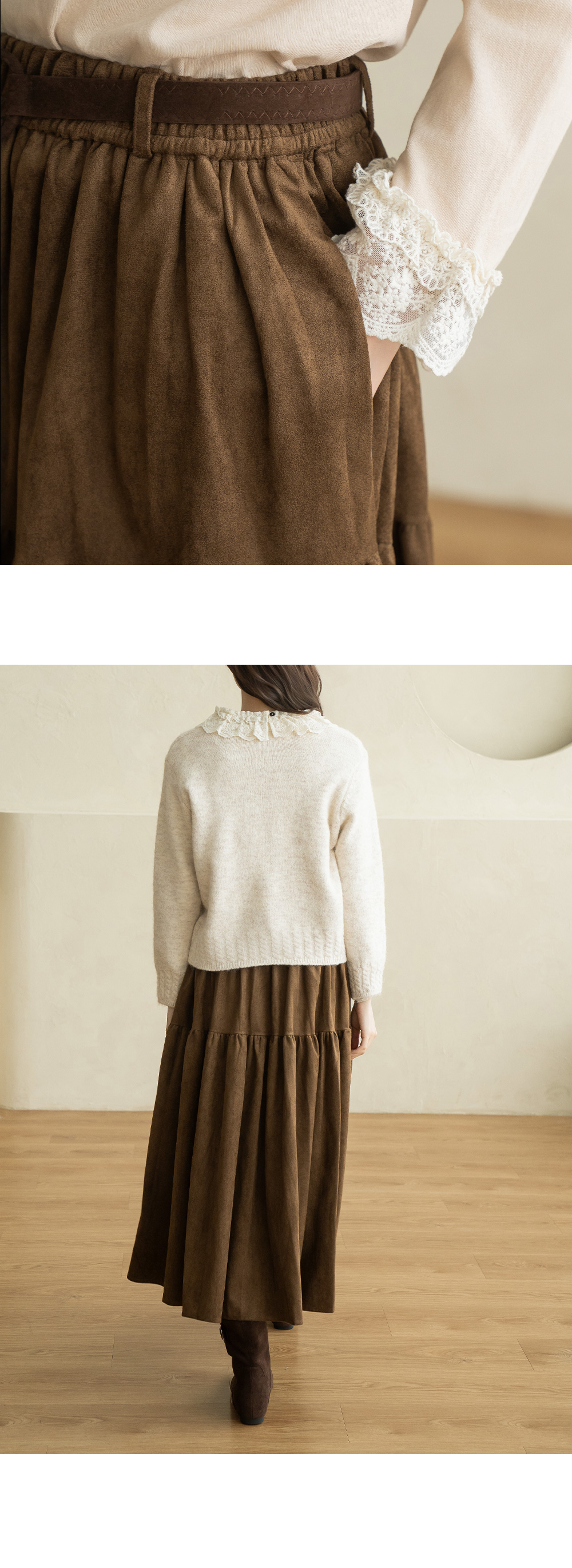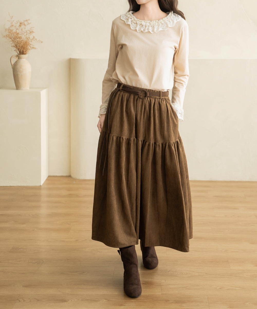 • [Natural Poem] Belt Long Suede Skirt - SK2510005 -