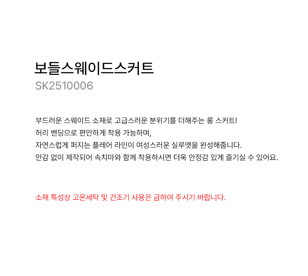 - 소재 특성상 고온세탁 및 건조기 사용은 금하여 주시기 바랍니다.