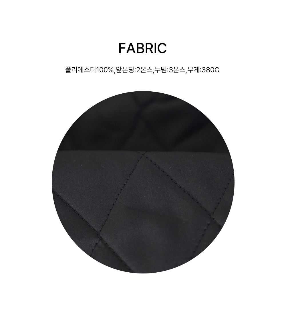 소재 폴리에스터100%,앞본딩:2온스,누빔:3온스,무게:380g