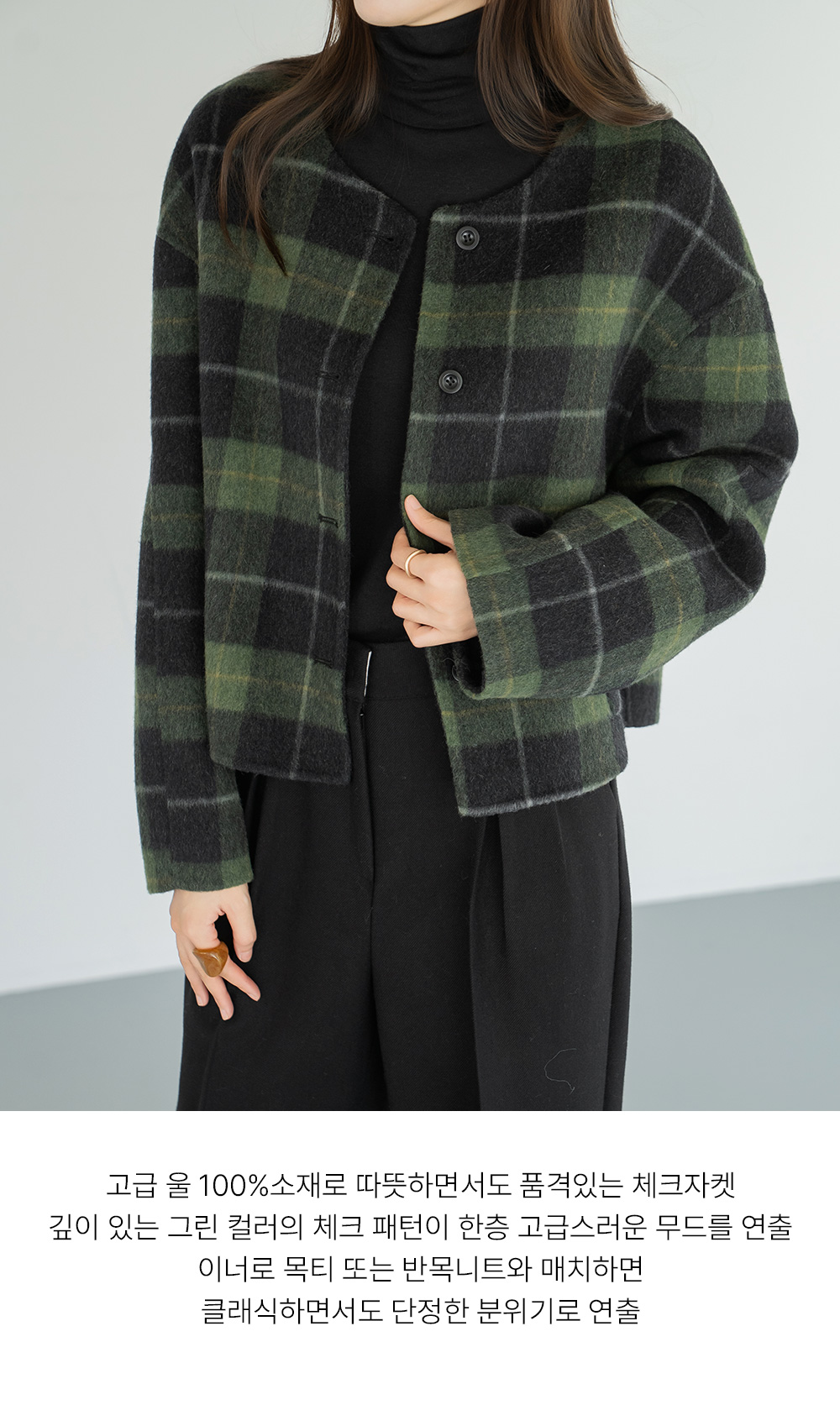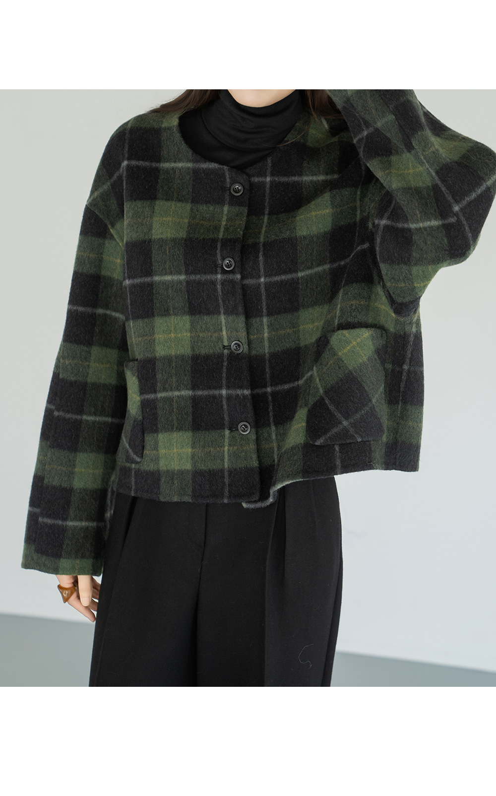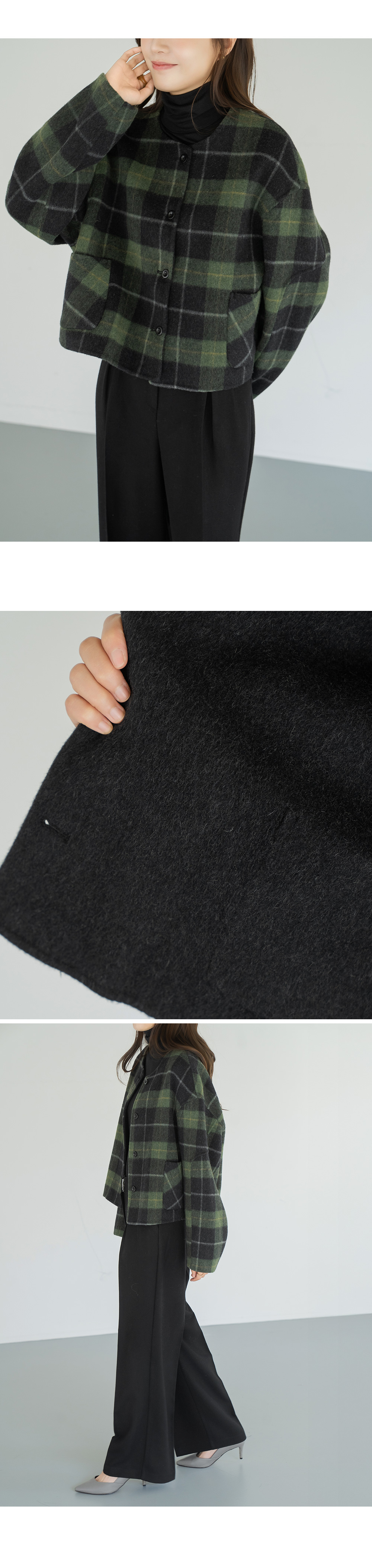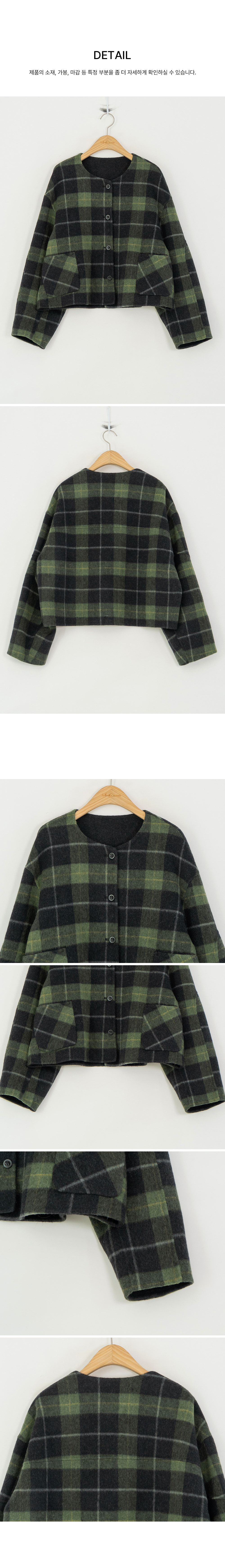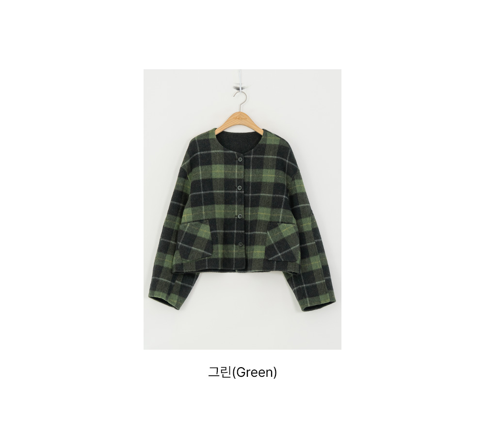 • [Modern Basic] Checked No Collar Wool Jacket - JK2510018 -
