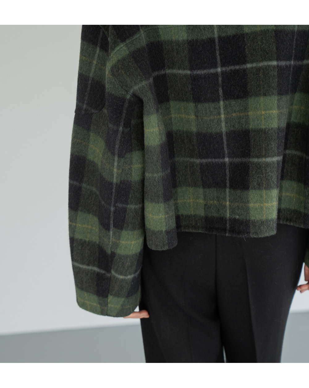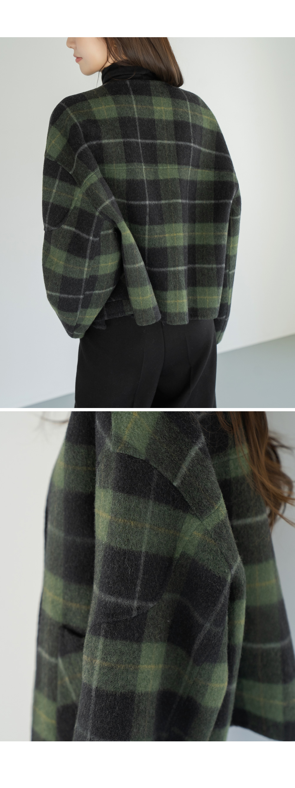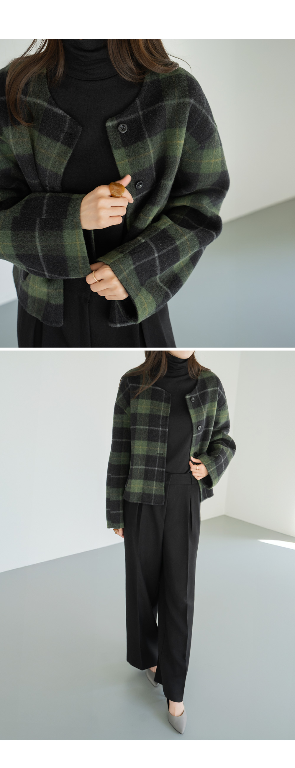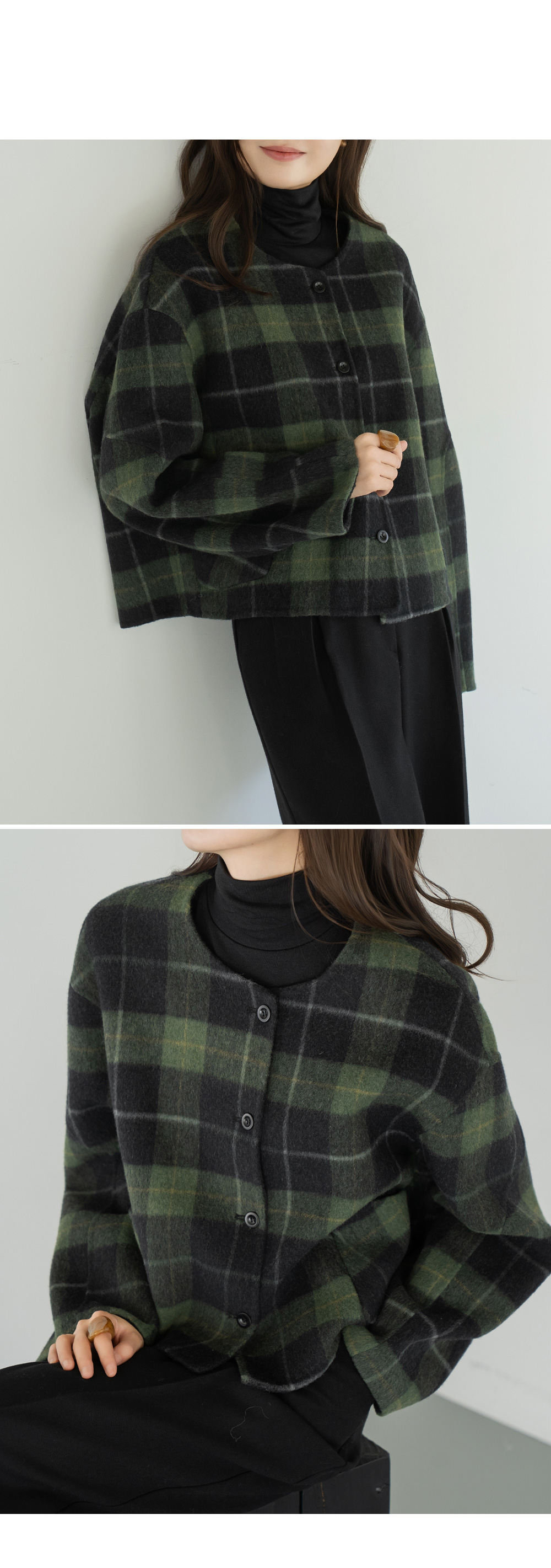 • [Modern Basic] Checked No Collar Wool Jacket - JK2510018 -