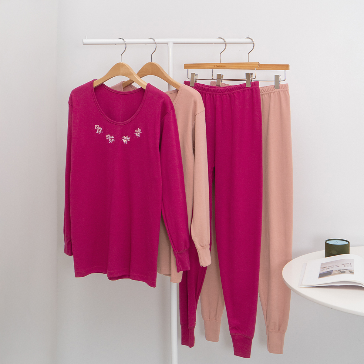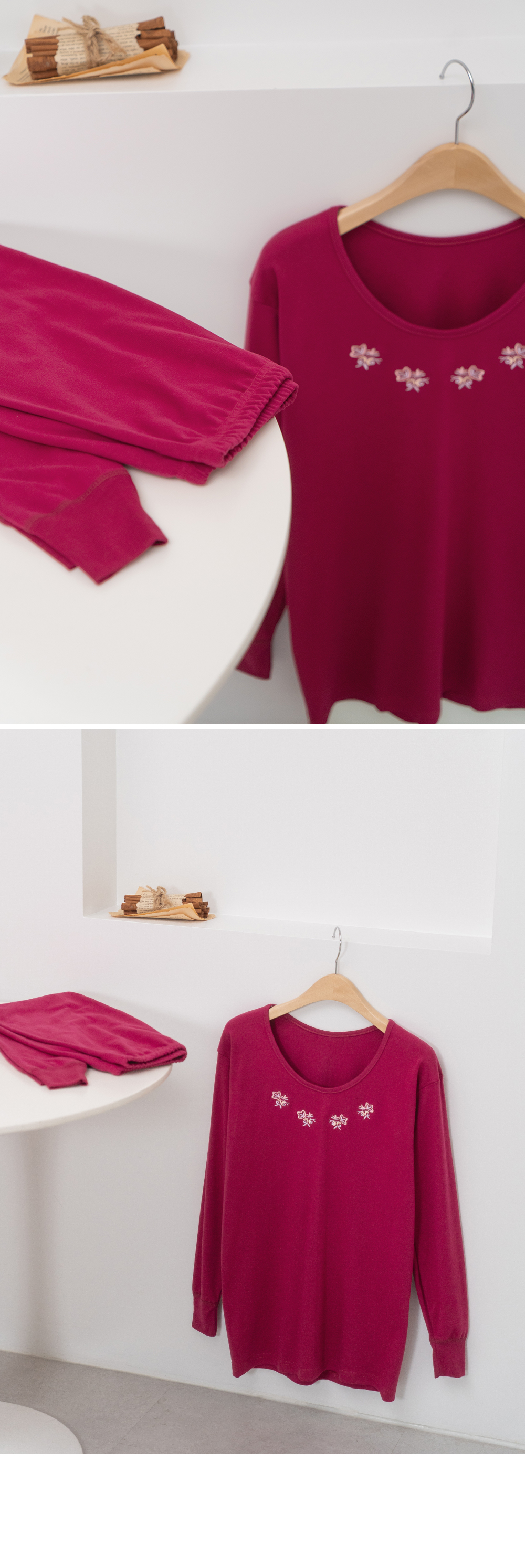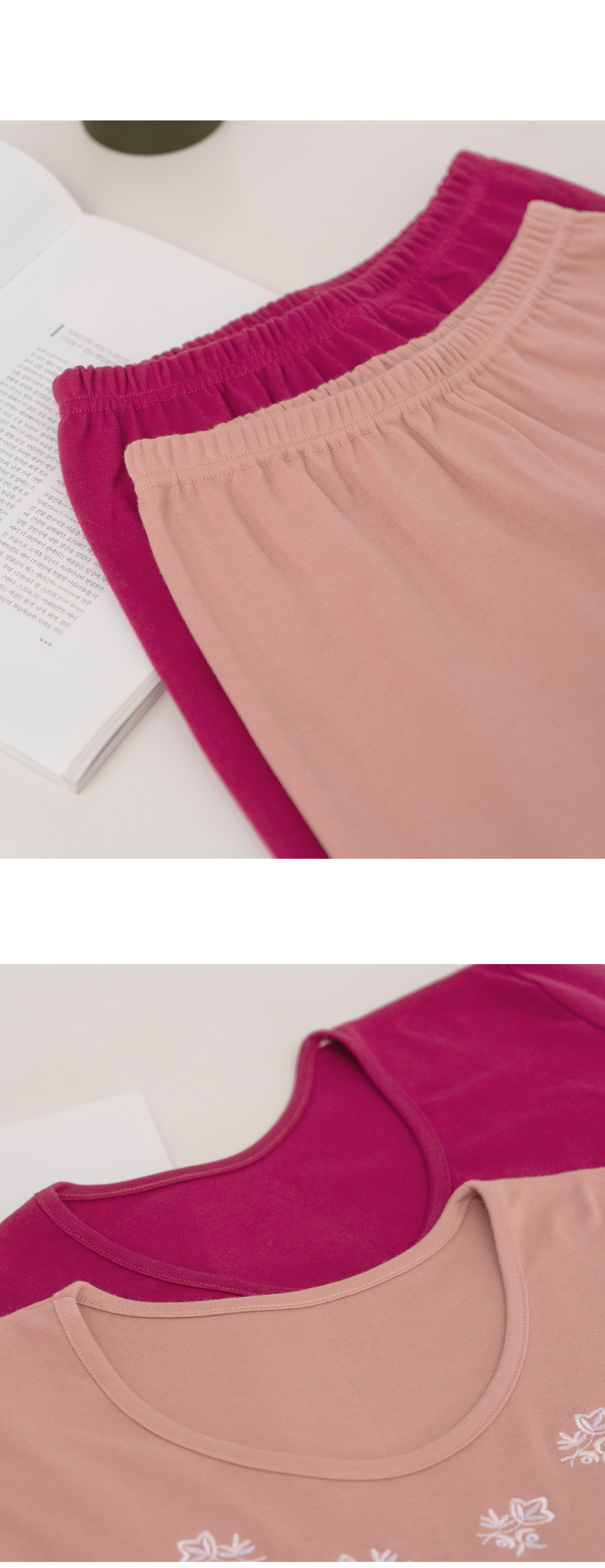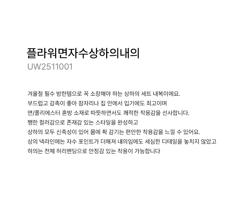 사이즈 총장(상/하) 어깨(단면)/허리(단면) 가슴(단면)/엉덩이(단면) 소매길이(단면)/밑위(단면) 암홀(단면)/허벅지(단면) 소매통(단면) 소매단(단면) 밑단(단면)(상/하) 목너비