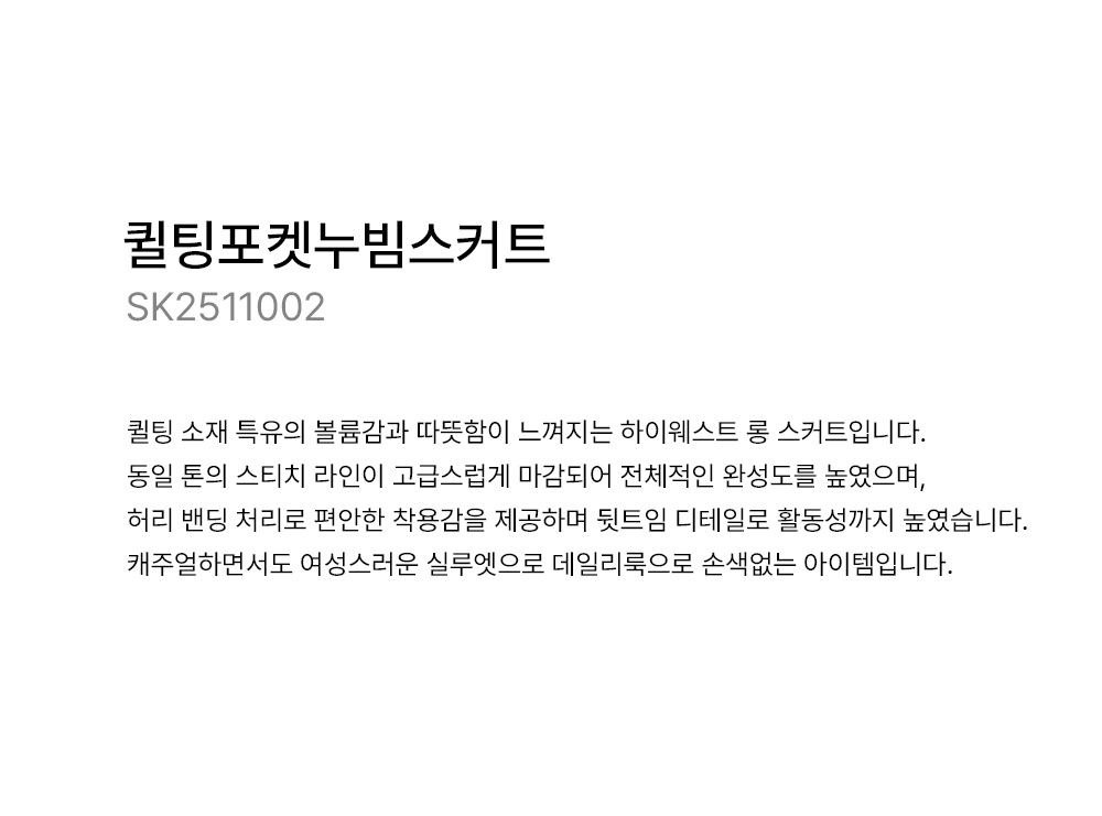 • [Natural Poem] Quilted Pocket Quilted Skirt - SK2511002 -
