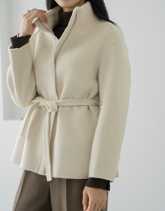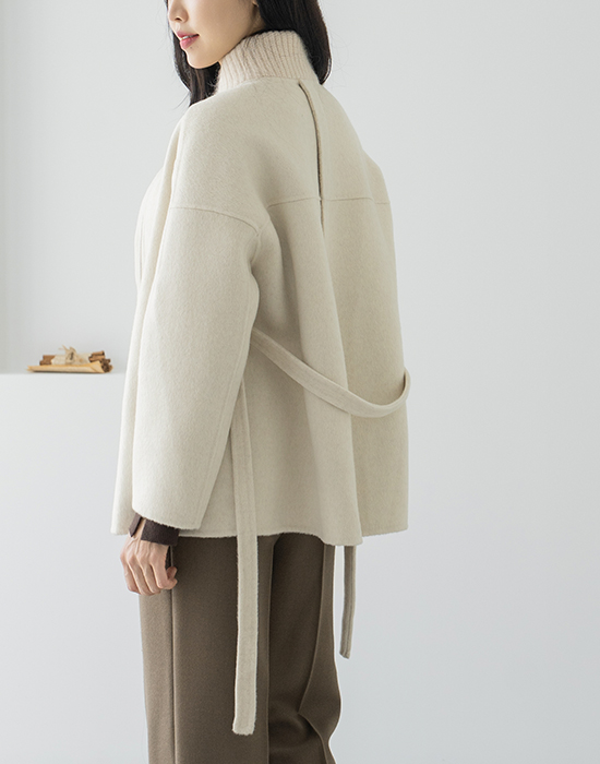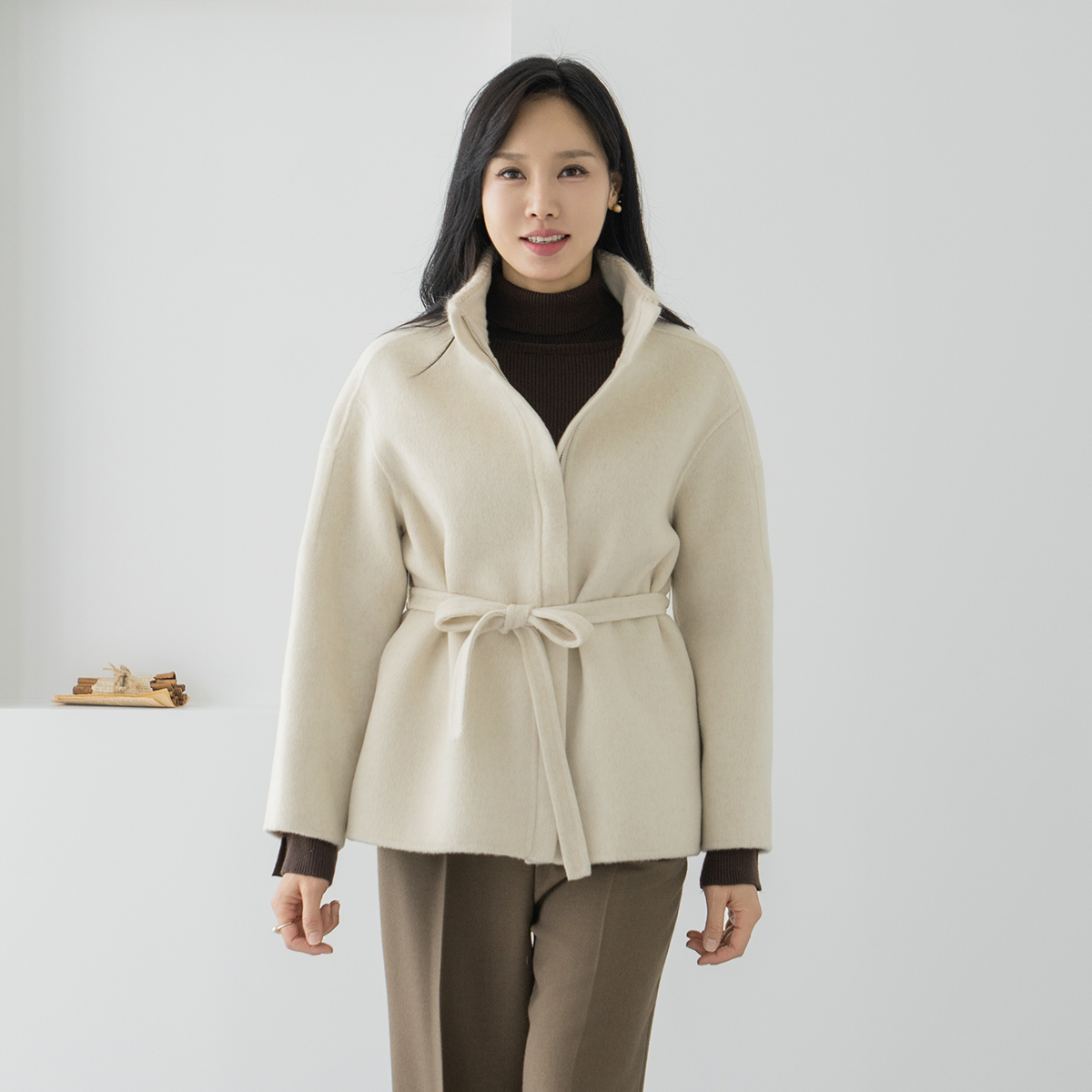 • [Classy Madam] Waist Strap Cashmere Half Wool Jacket - JK2511011 -
