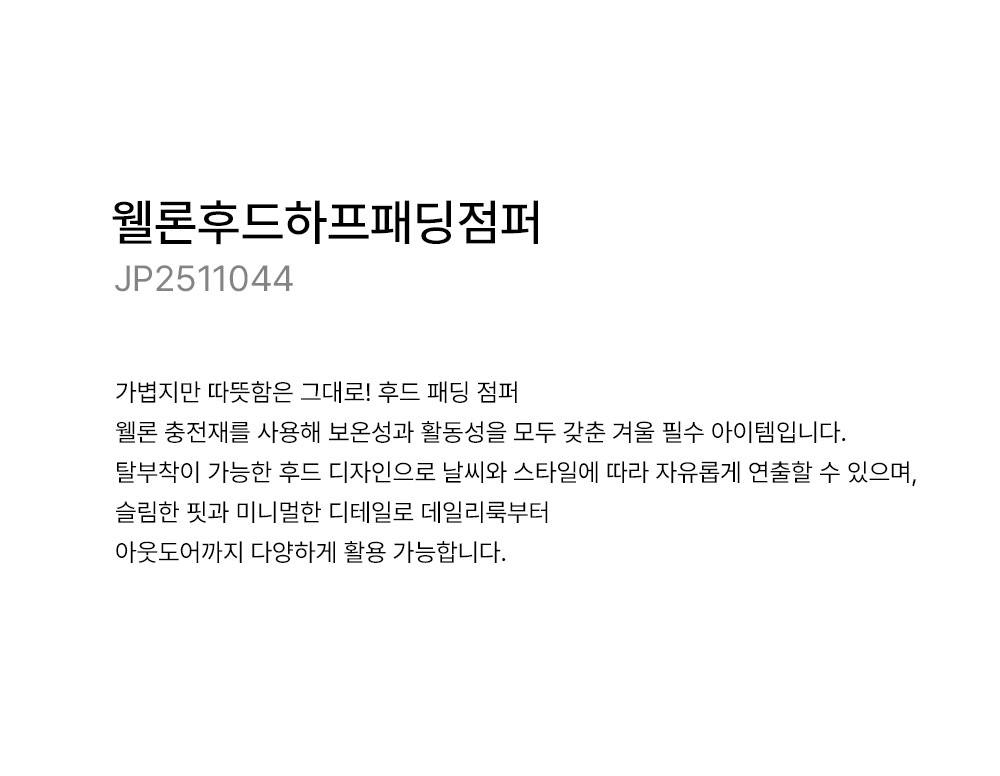 • Wellon Hooded Half Padding Jumper - JP2511044