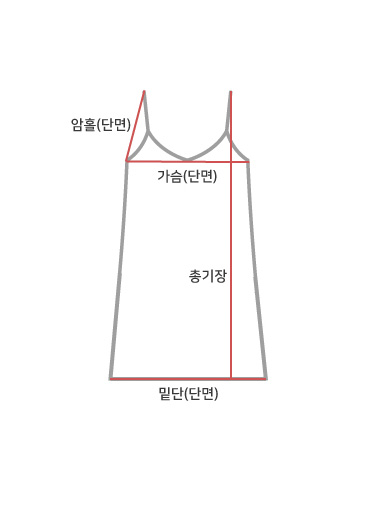 사이즈 총장 어깨 가슴(단면) 암홀(단면) 밑단(단면)