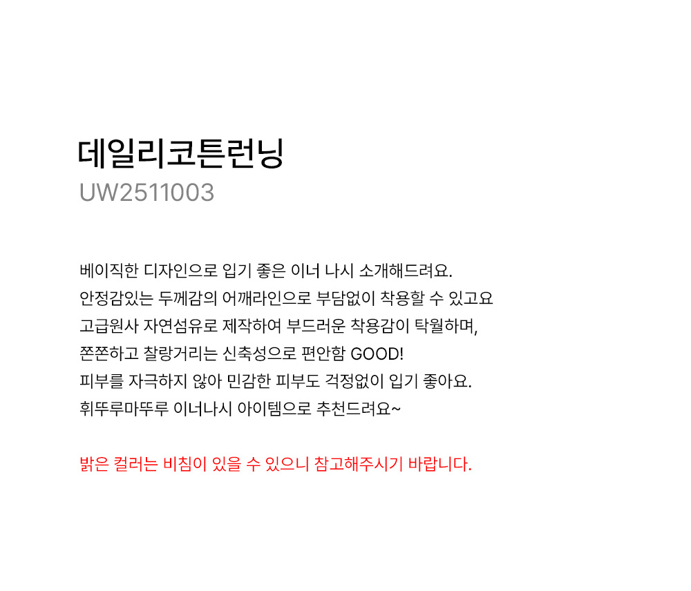 - 해당 상품의 코디아이템은 실제 코디된 상품과 다를 수 있습니다.