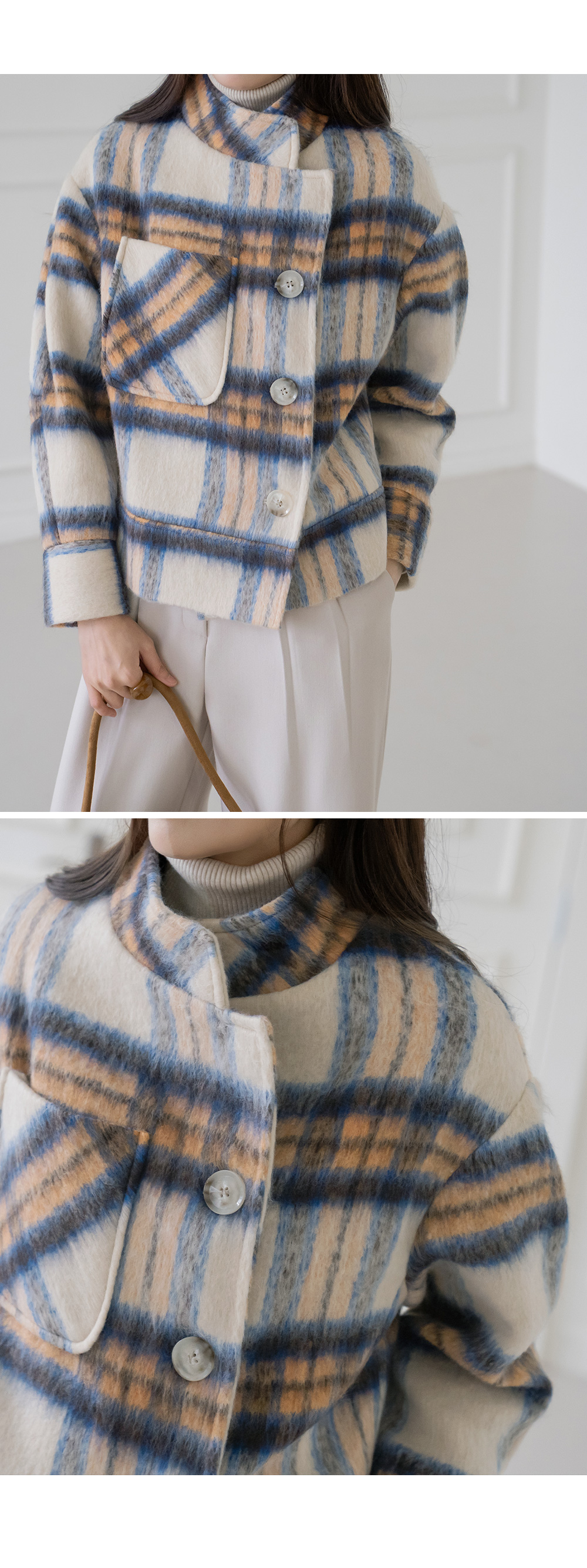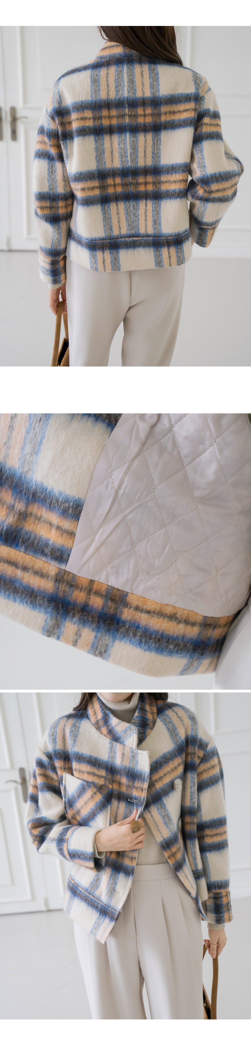 • [Modern Basic] Dora Wool Check Short Quilted Jacket - JK2511024 -