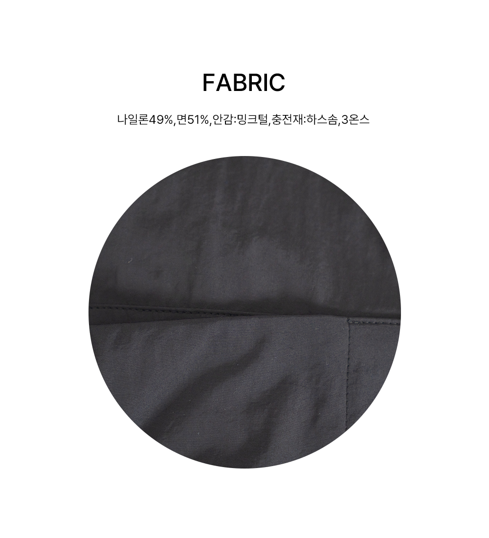 소재 나일론49%,면51%,안감:밍크털,충전재:하스솜,3온스