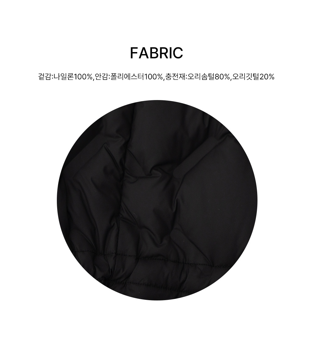 소재 겉감:나일론100%,안감:폴리에스터100%,충전재:오리솜털80%,오리깃털20%