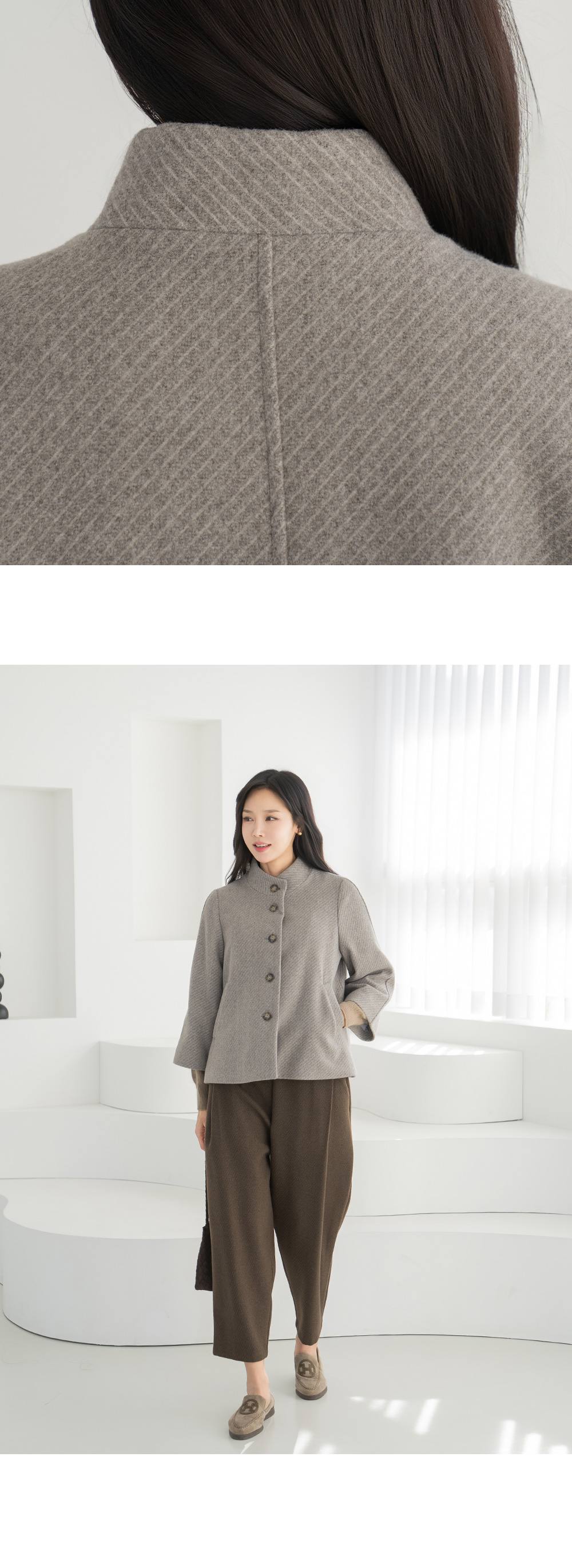 • [Classy Madam] Combed High Neck Coat Short Jacket - JK2512001 -