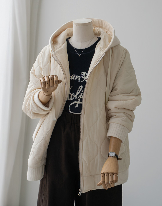 • [Resen] Knit Color Block Hooded Padding - LJP2512021 -