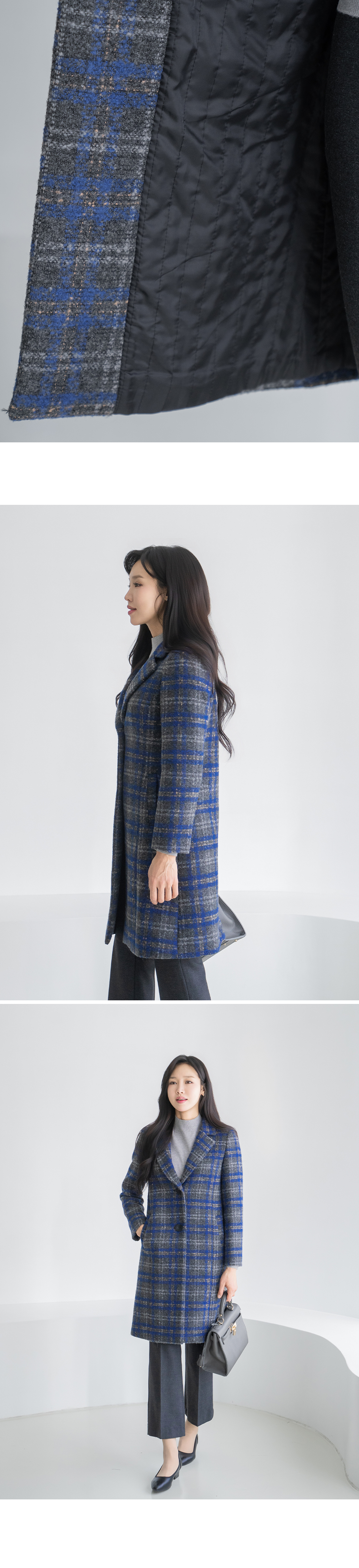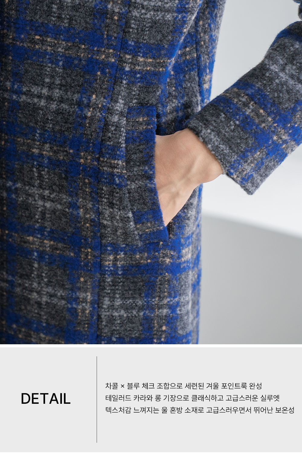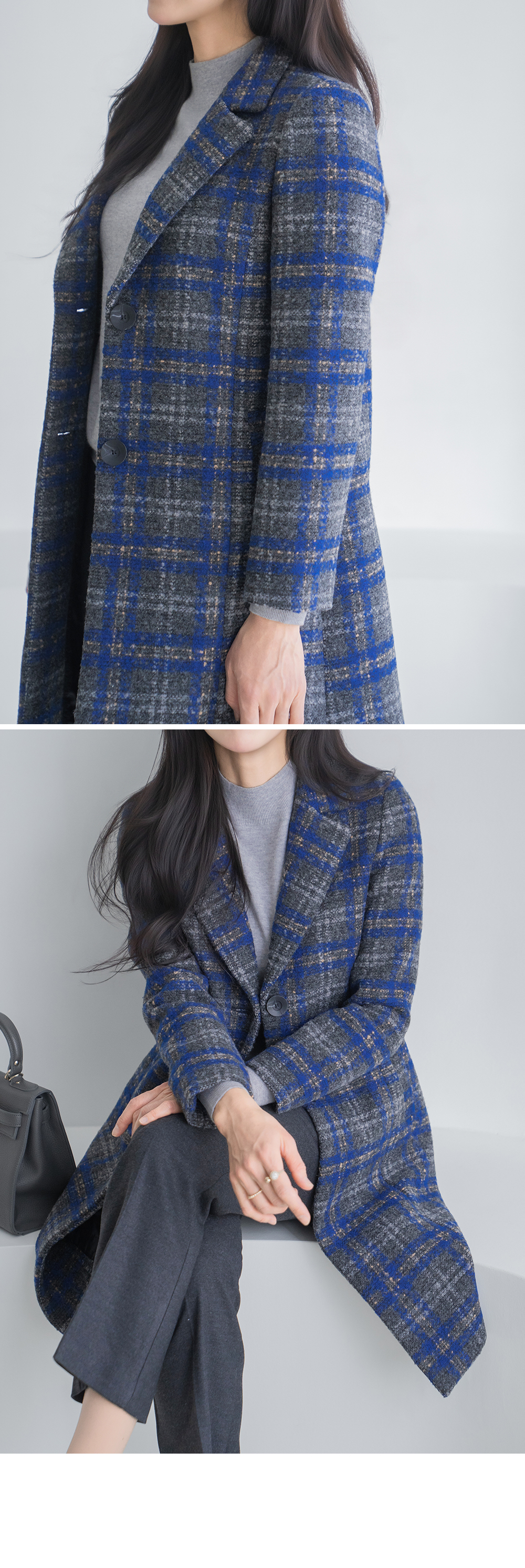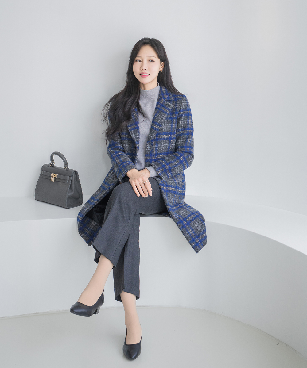 • [Classy Madam] Blue Check Wool Long Coat - CO2512019 -