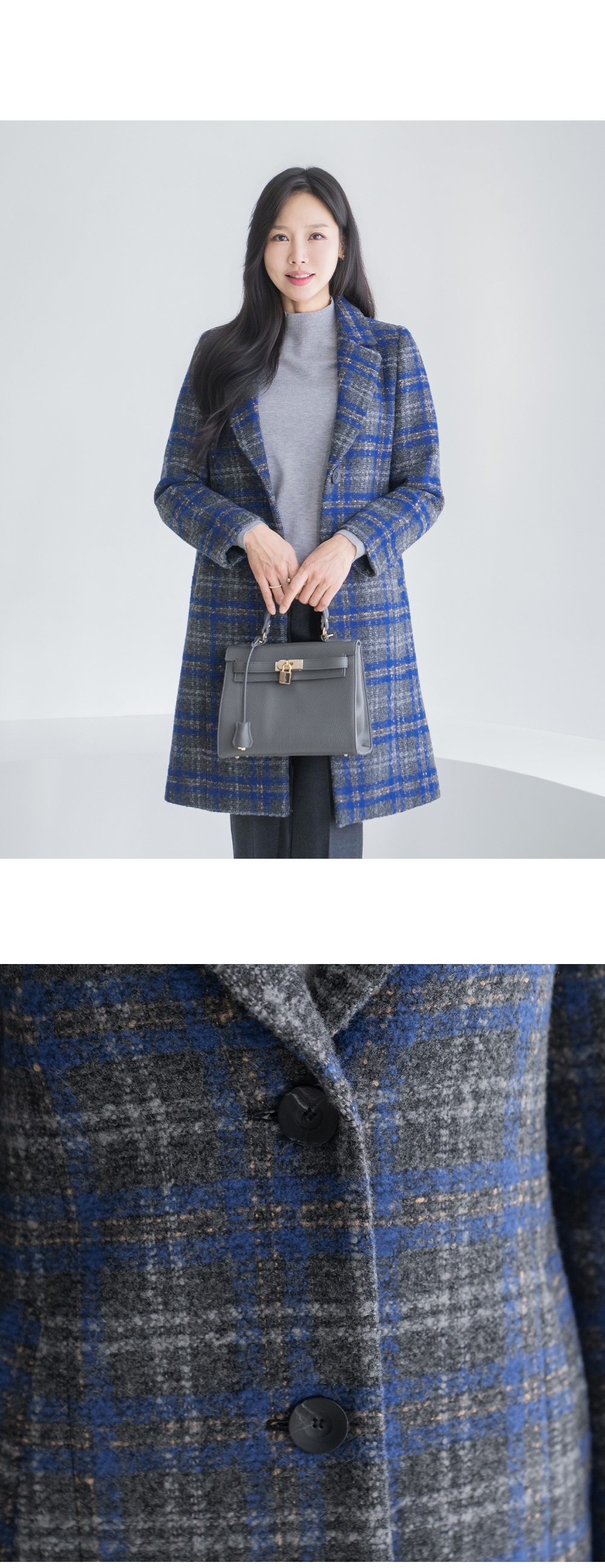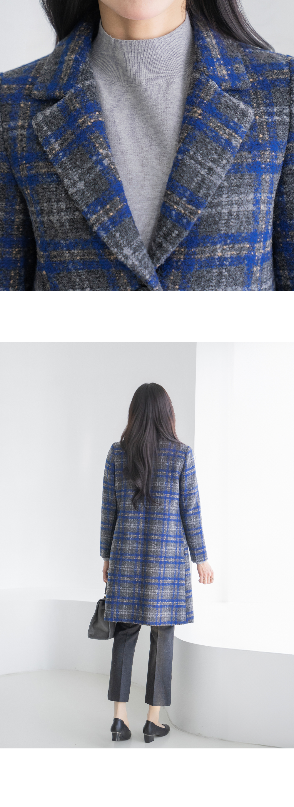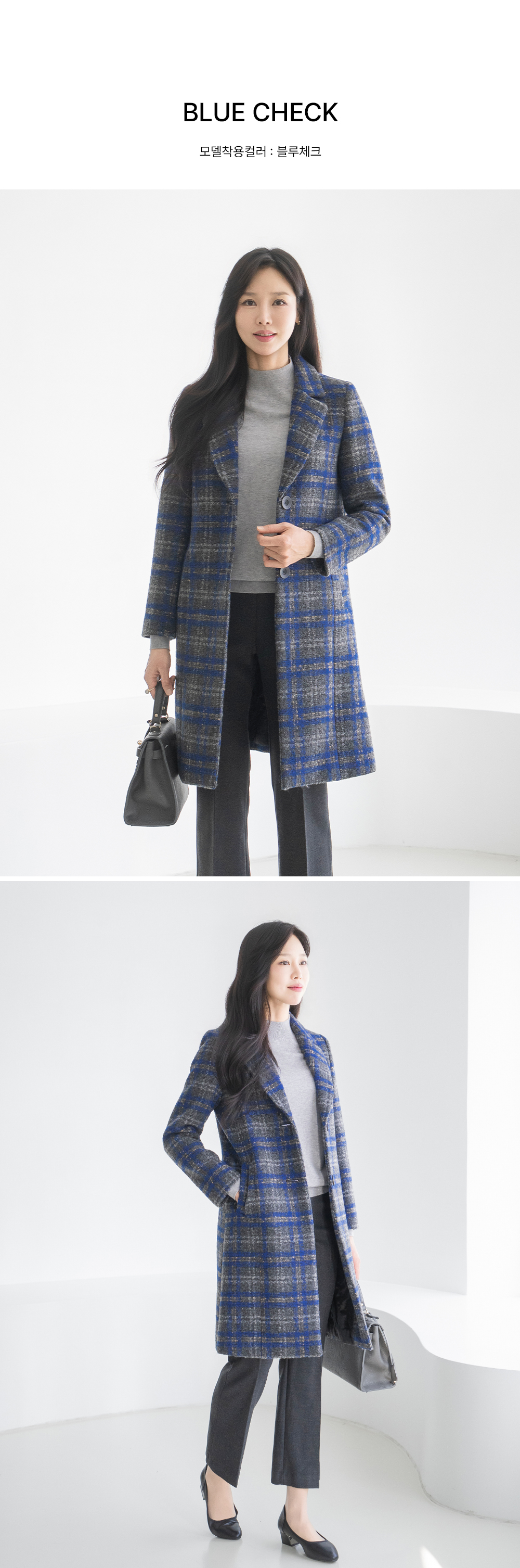 • [Classy Madam] Blue Check Wool Long Coat - CO2512019 -