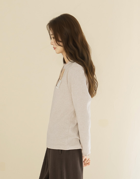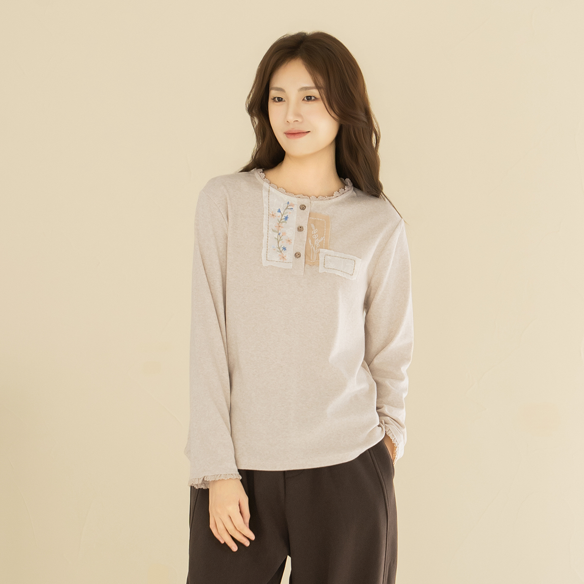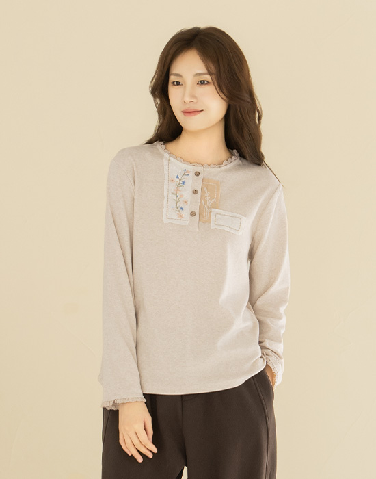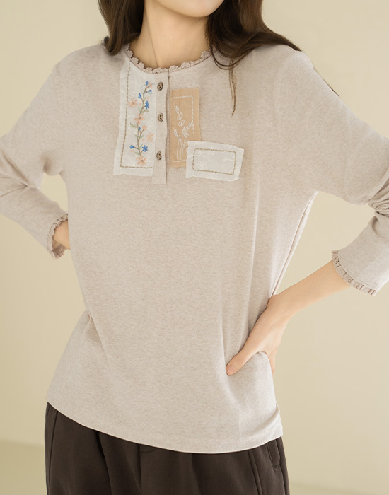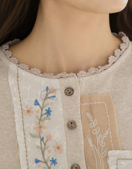 • [Natural Poem] Flower Embroidery Patch T-shirt - TE2512059 -