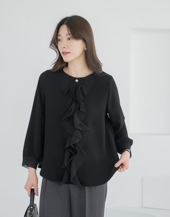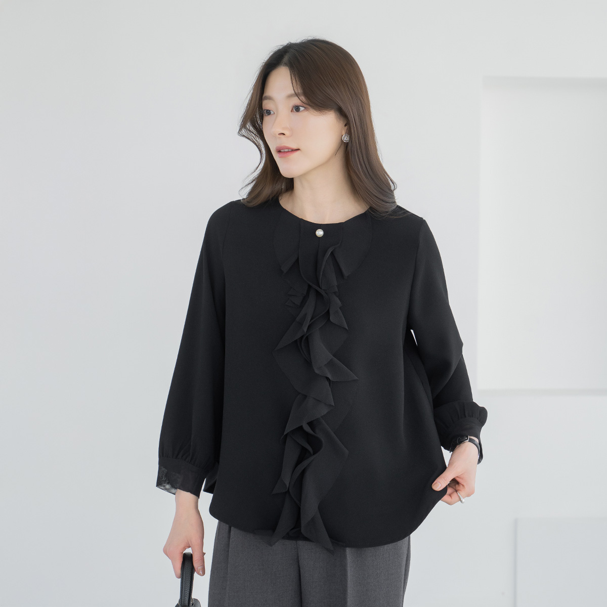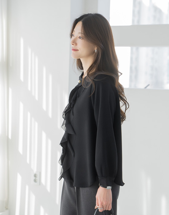 • [Classy Madam] Mesh Double Frill Blouse - BL2512016 -