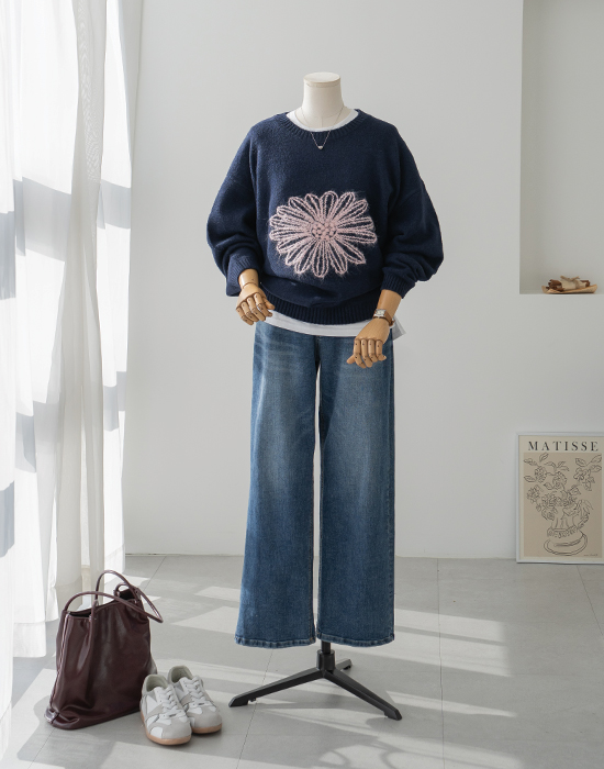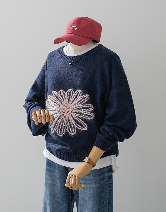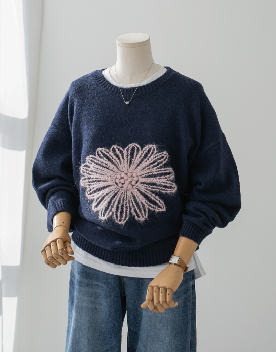 • [Resen] Big Flower Embroidered Knit - LKN2601004 -