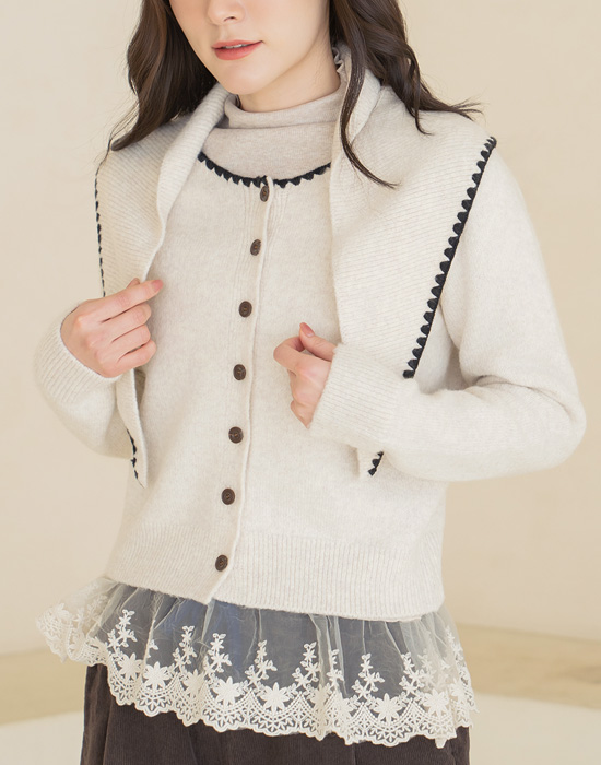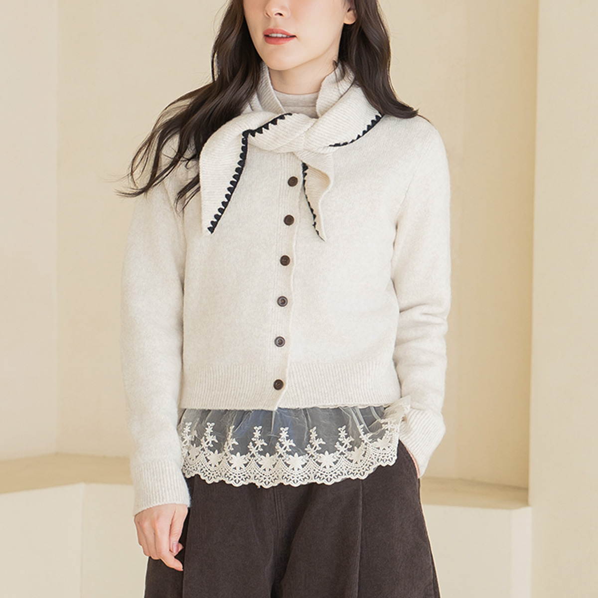 • [Natural Poem] Triangle Muffler Cardigan Set - SET2601005 -