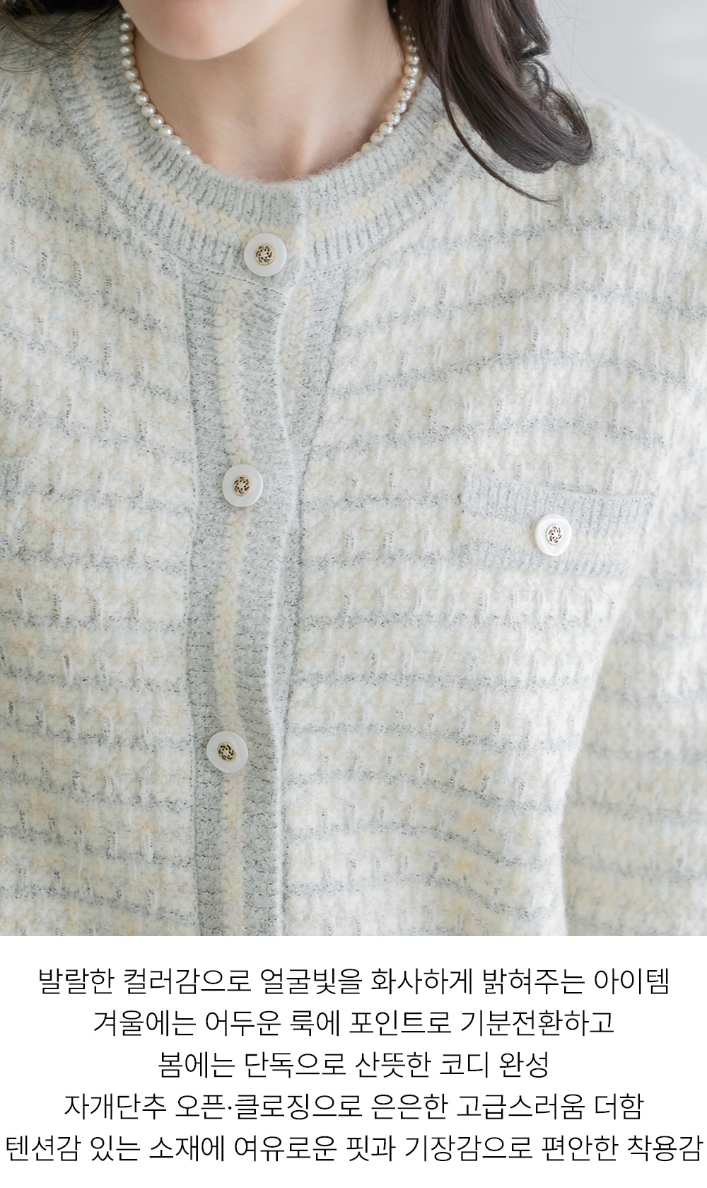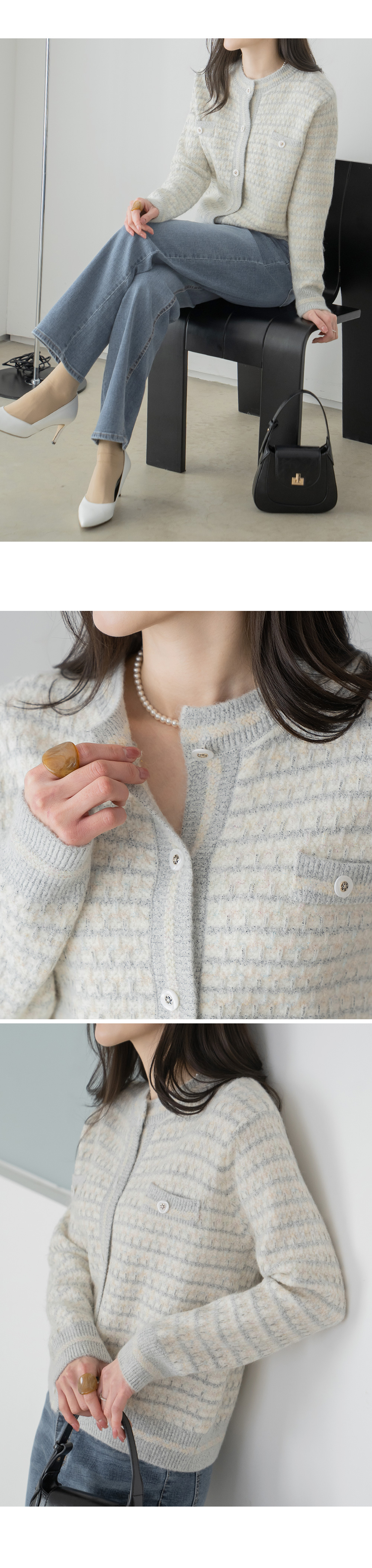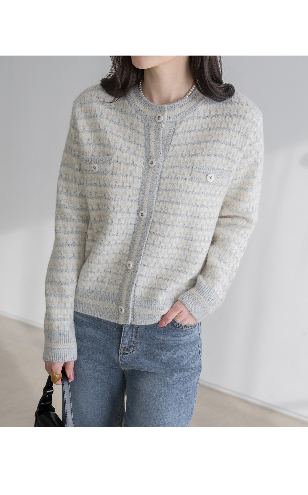 • [Modern Basic] Mother-of-pearl Tweed Wool Cardigan - CA2601018