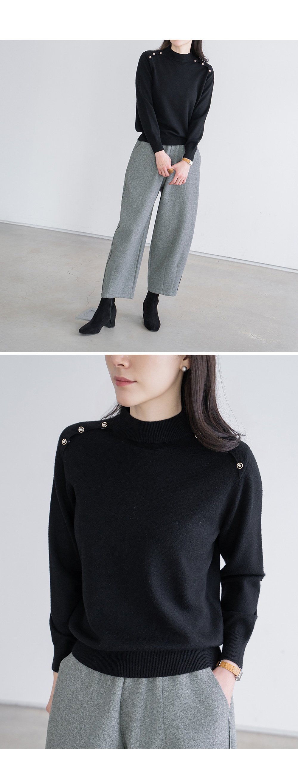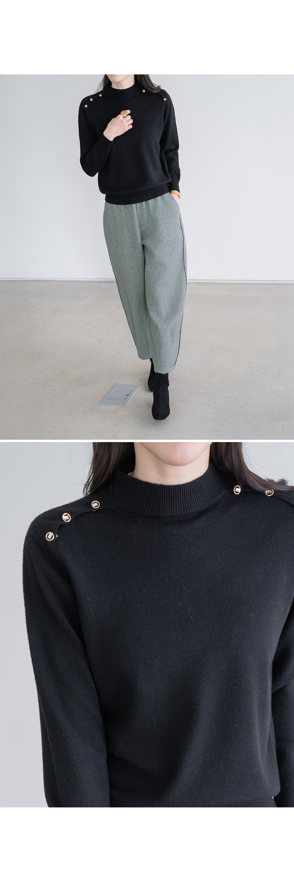 • [Modern Basic] Bling Button Half-Length Knit - KN2601020