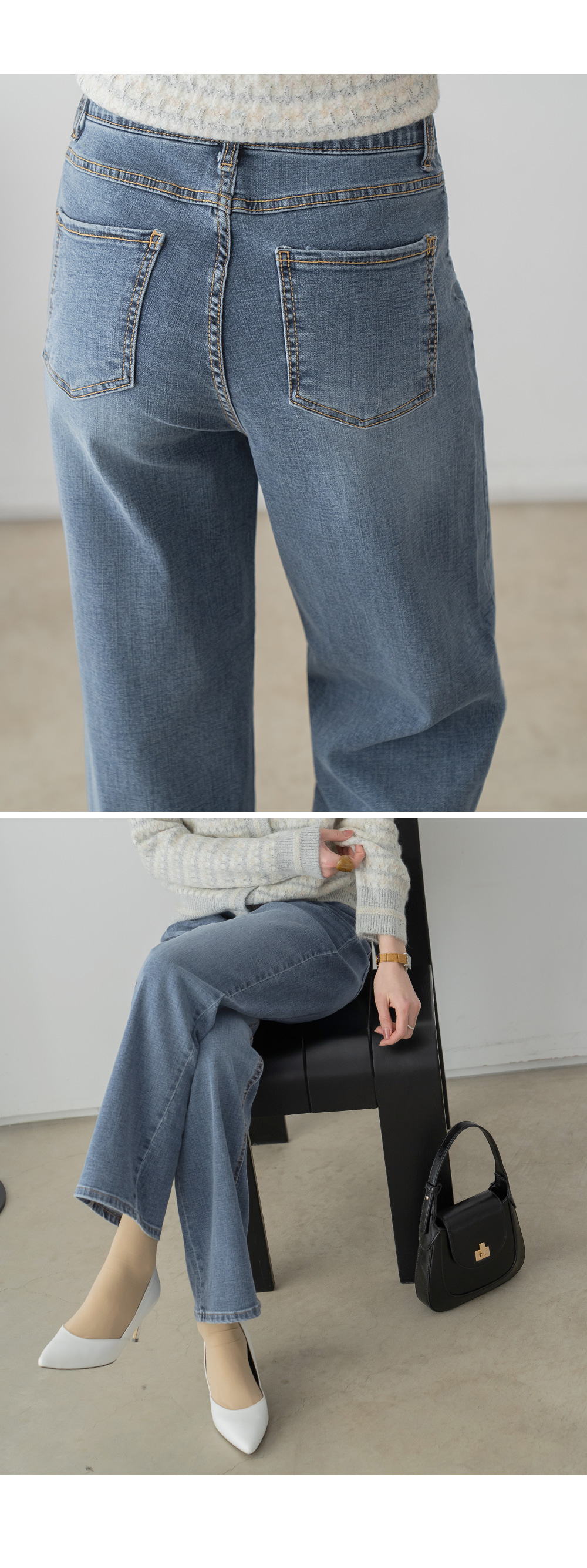 데님제품 및 염색한 원단제품은 물빠짐 현상이 일어날 수 있으므로 반드시 단독세탁 해 주셔야 합니다.