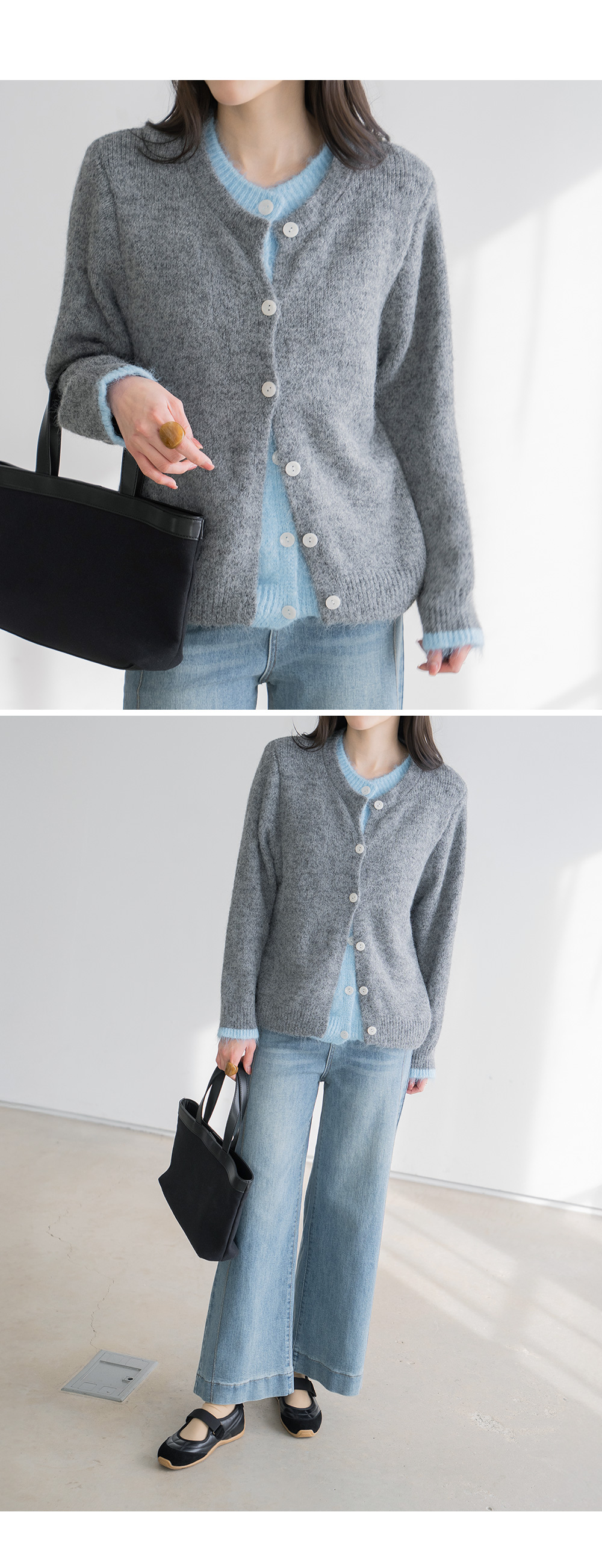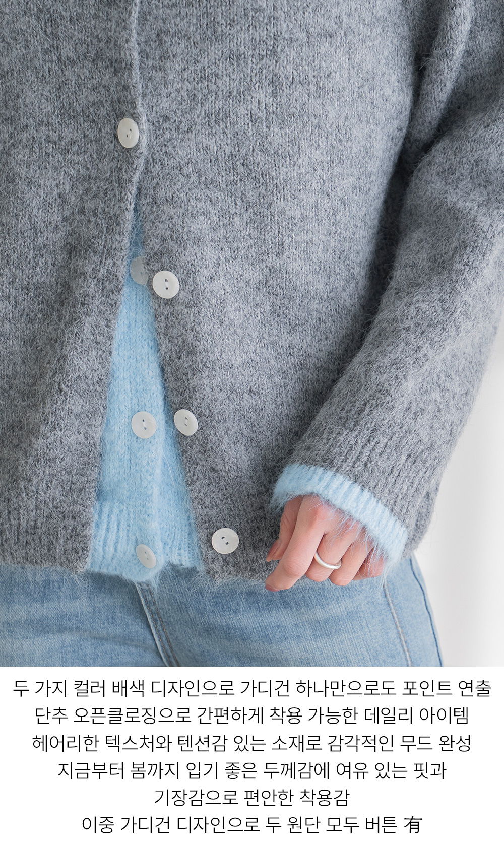 • [Modern Basic] Hairy Color Block Button Cardigan - CA2601015 -