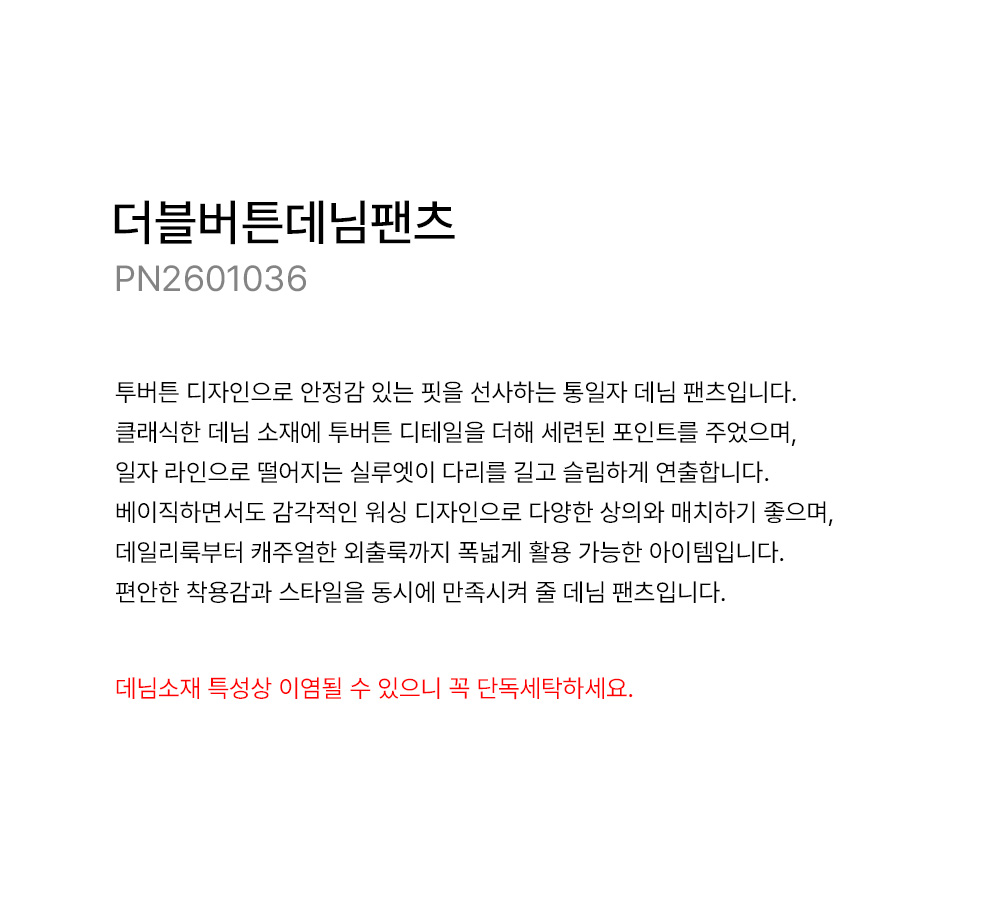 - 데님소재 특성상 이염될 수 있으니 꼭 단독세탁하세요.