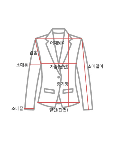 사이즈 총장 어깨 가슴(단면) 소매길이 암홀(단면) 소매통(단면) 소매단(단면) 밑단(단면)