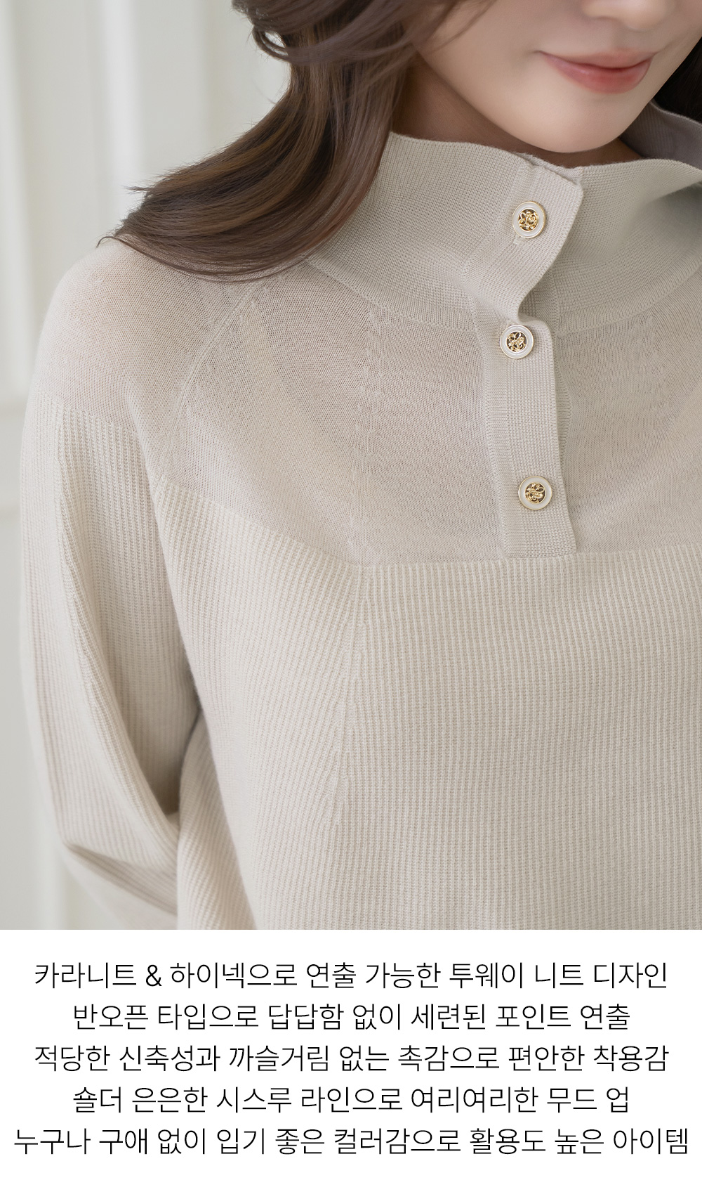 • [Modern Basic] Button High Neck Wool Knit T-Shirt - TE2602002 -