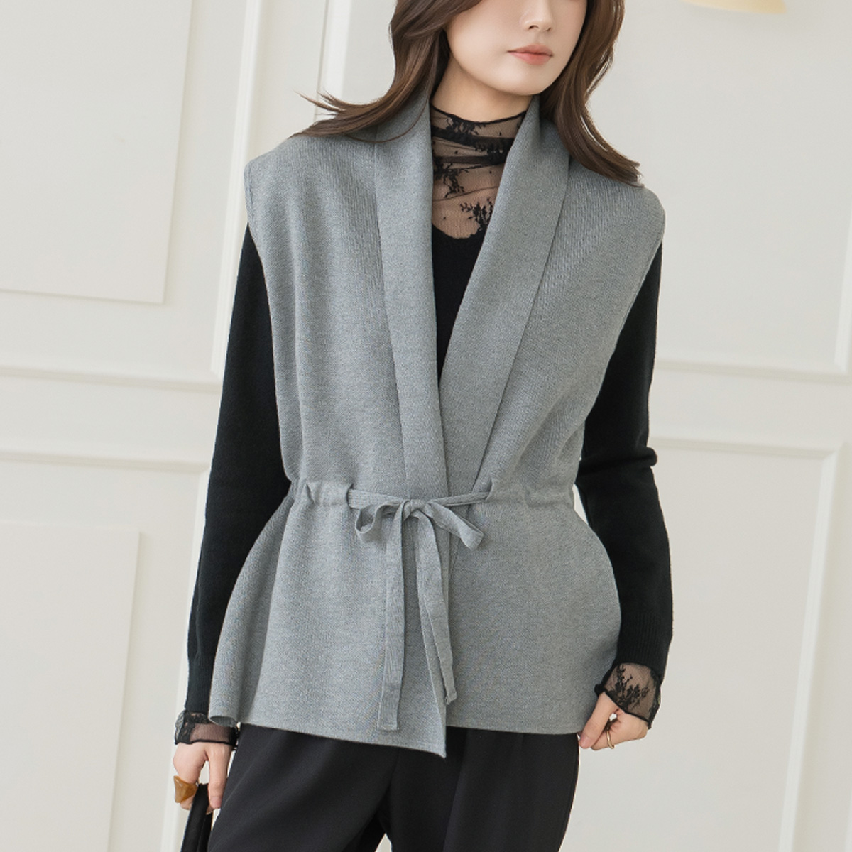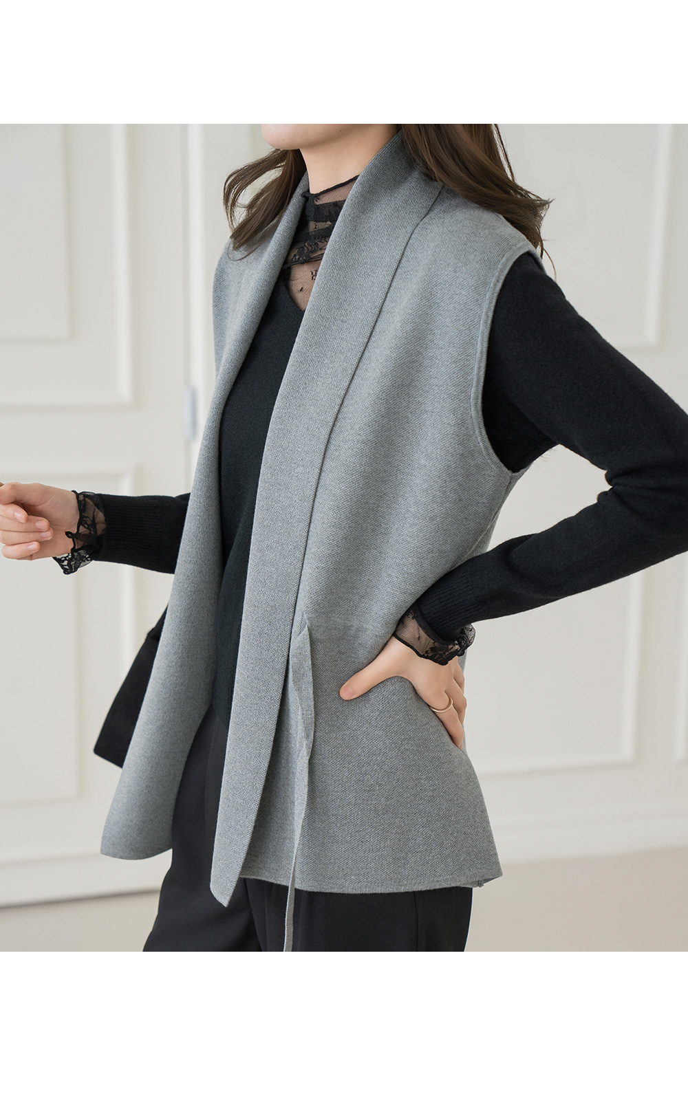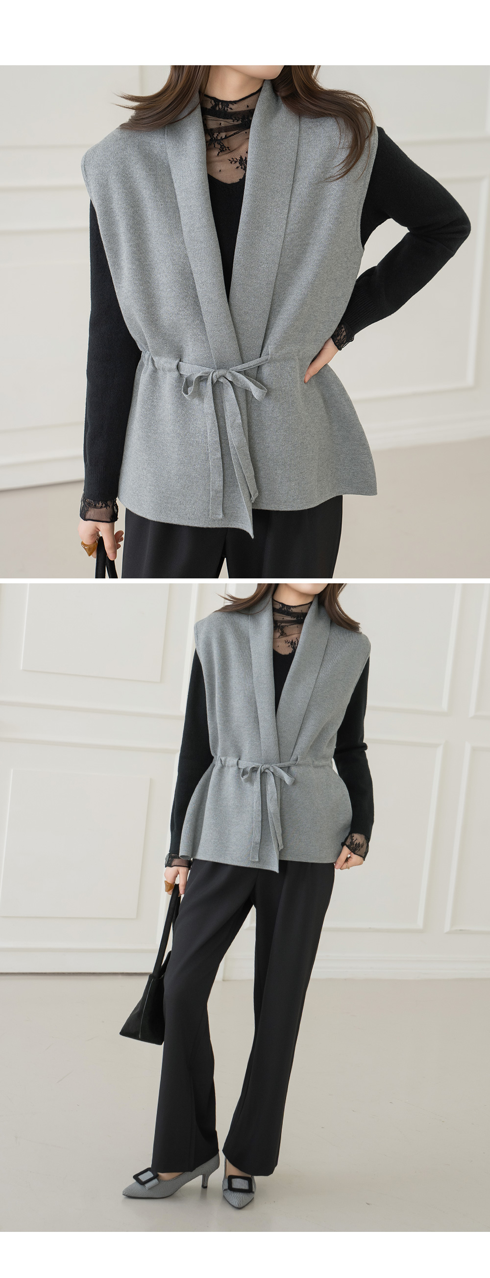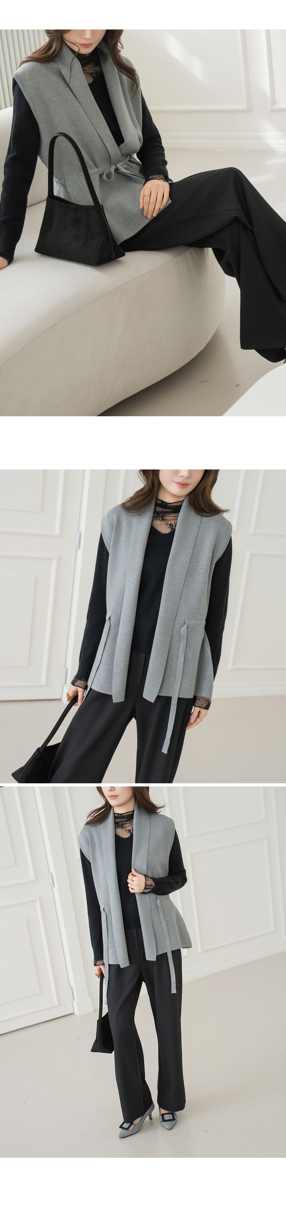 • [Modern Basic] Pony Waist Strap Knit Vest - VE2602001 -