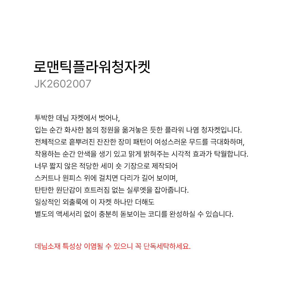 - Д데님소재 특성상 이염될 수 있으니 꼭 단독세탁하세요.Ж