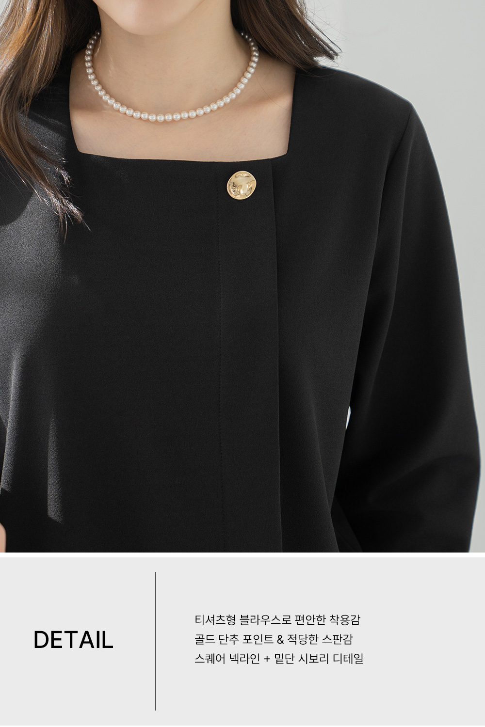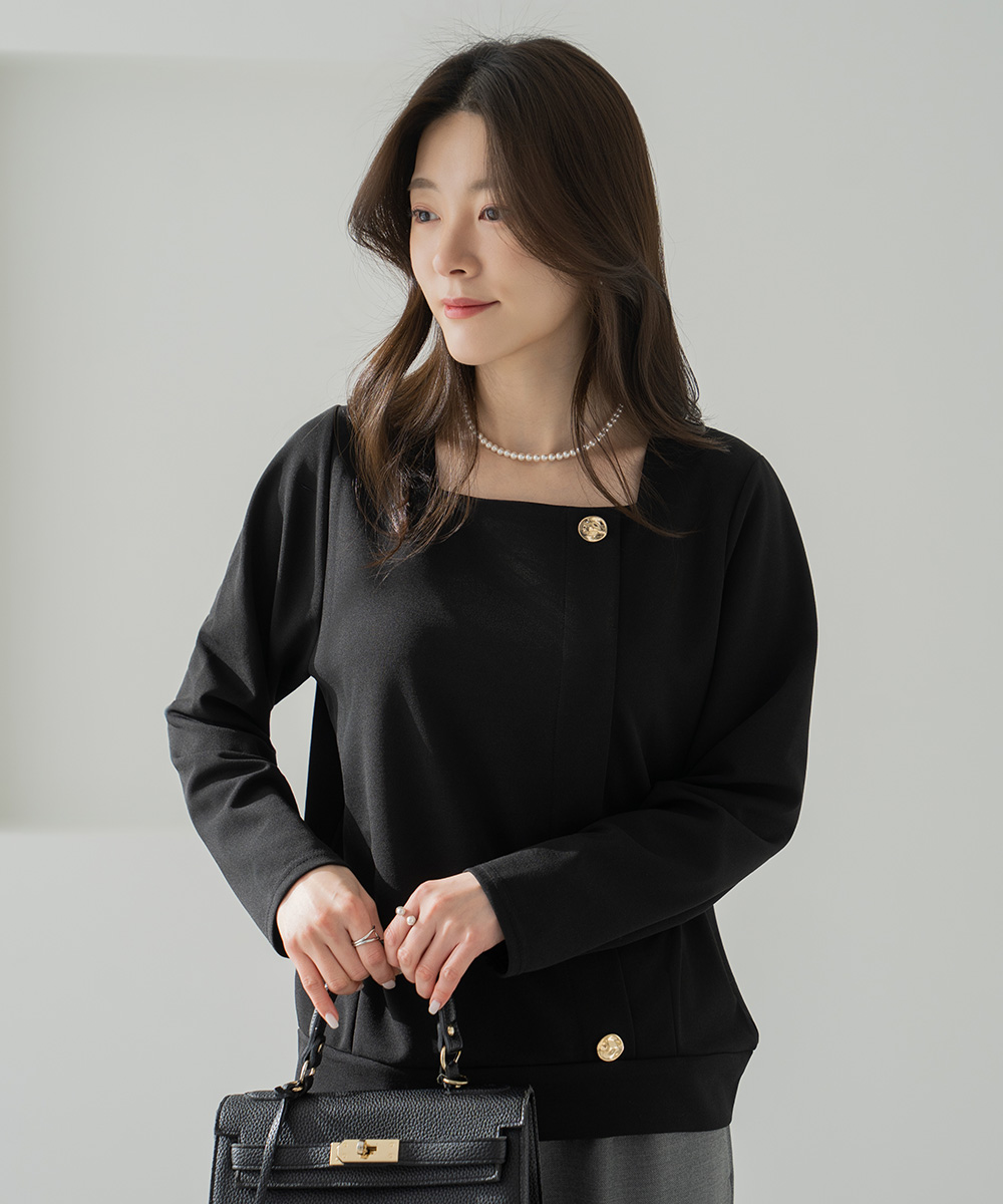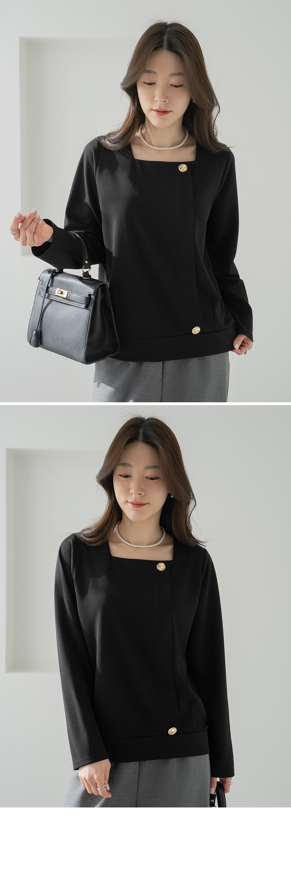 • [Classy Madam] Gold Button Square Neck Blouse - BL2602011 -