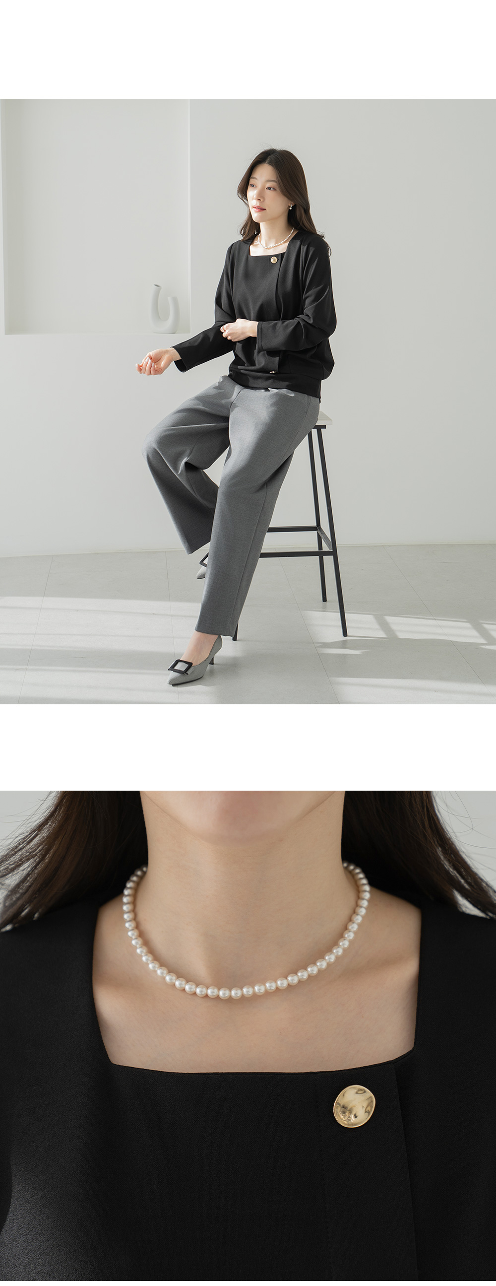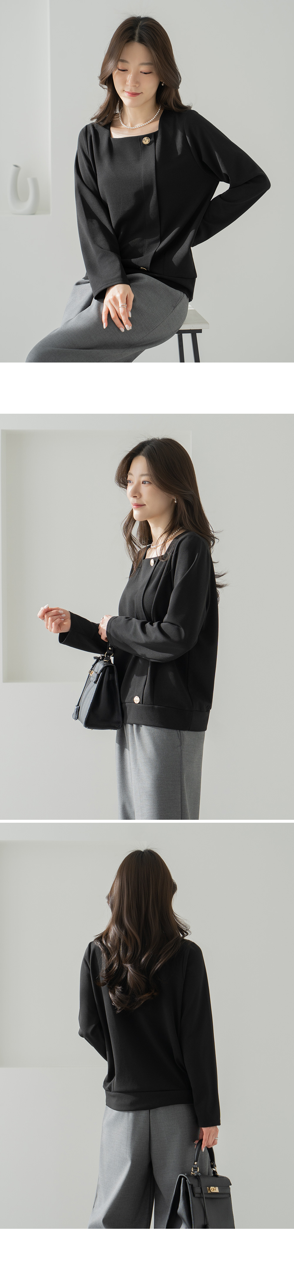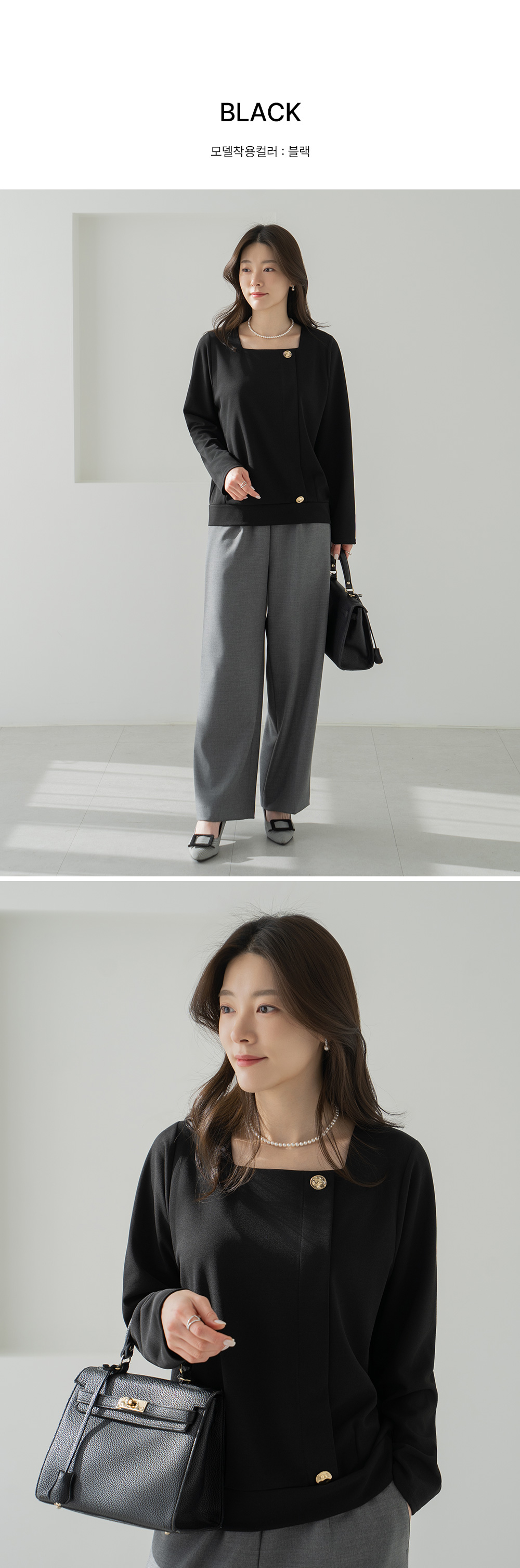 • [Classy Madam] Gold Button Square Neck Blouse - BL2602011 -
