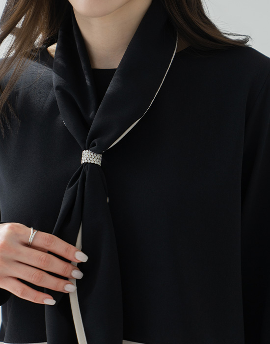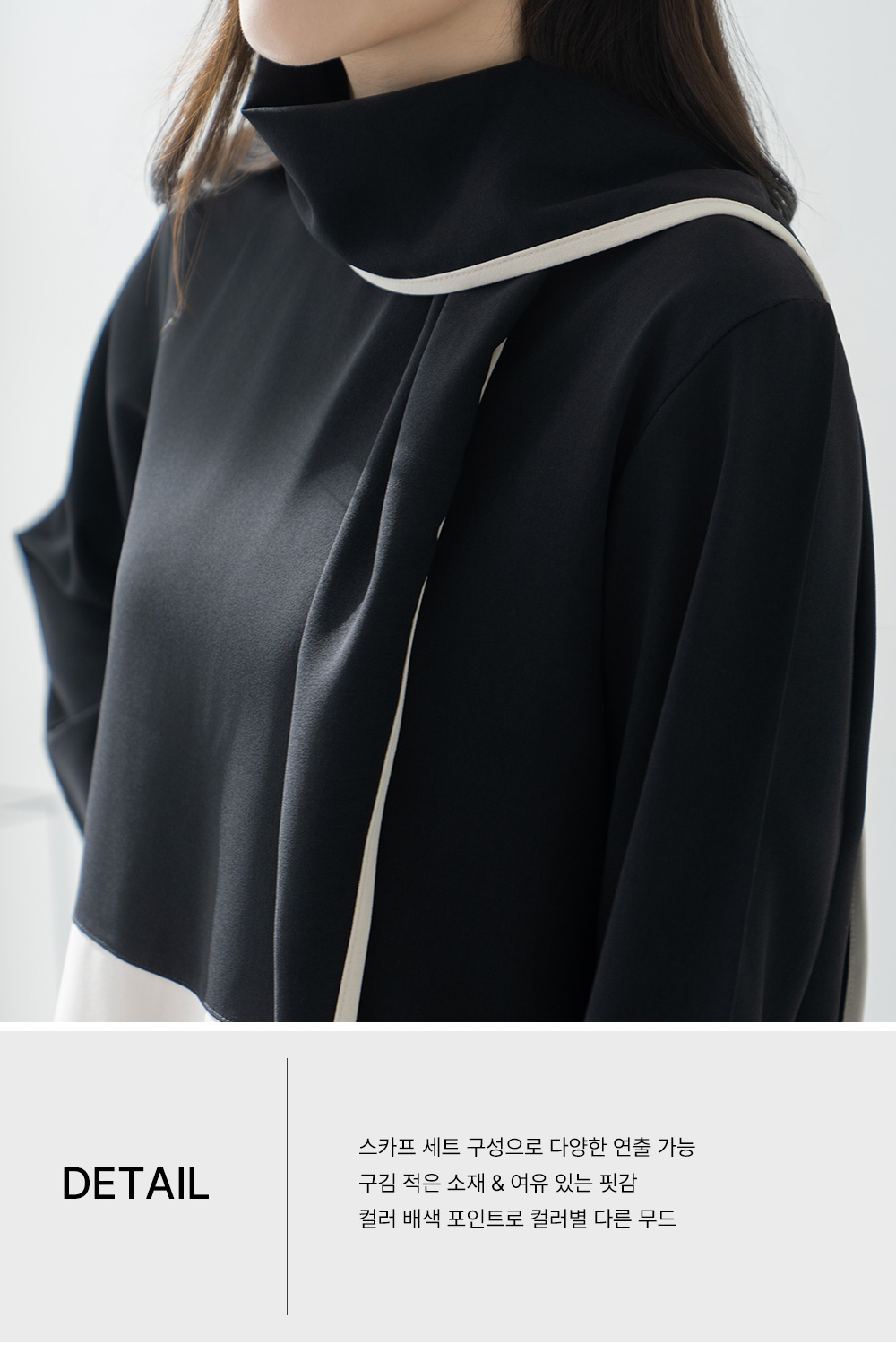 사이즈 총장 어깨 가슴(단면) 소매길이 암홀(단면) 소매통(단면) 소매단(단면) 밑단(단면) 목너비 스카프(길이/폭)