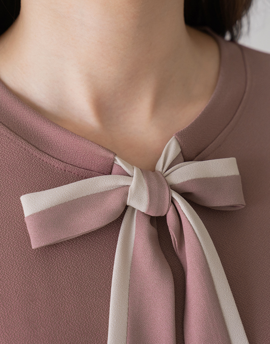 • Ribbon Tie Color Block T-shirt - TE2602031 -
