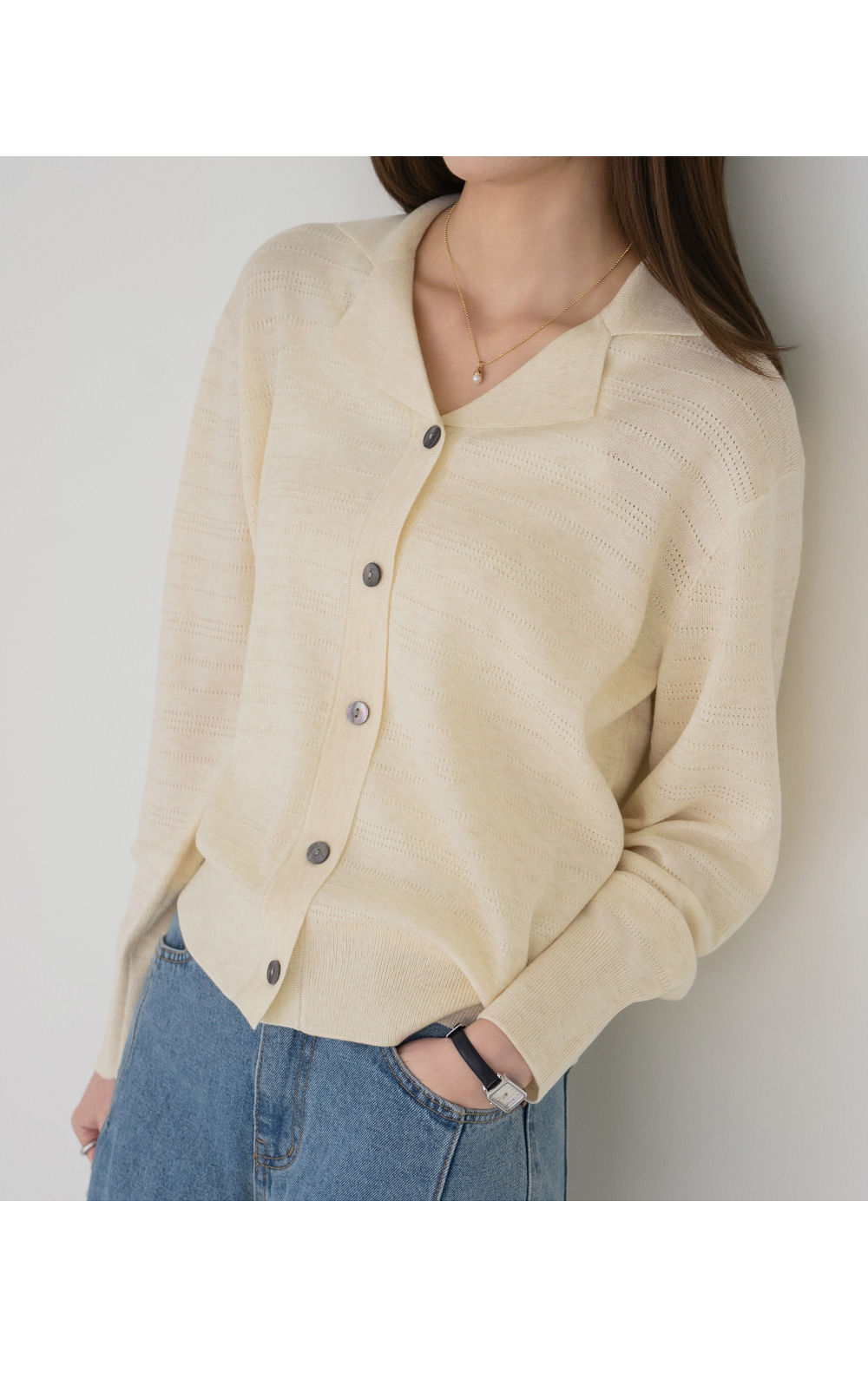 • [Modern Basic] Metallic Wool Button Cardigan - CA2603005 -