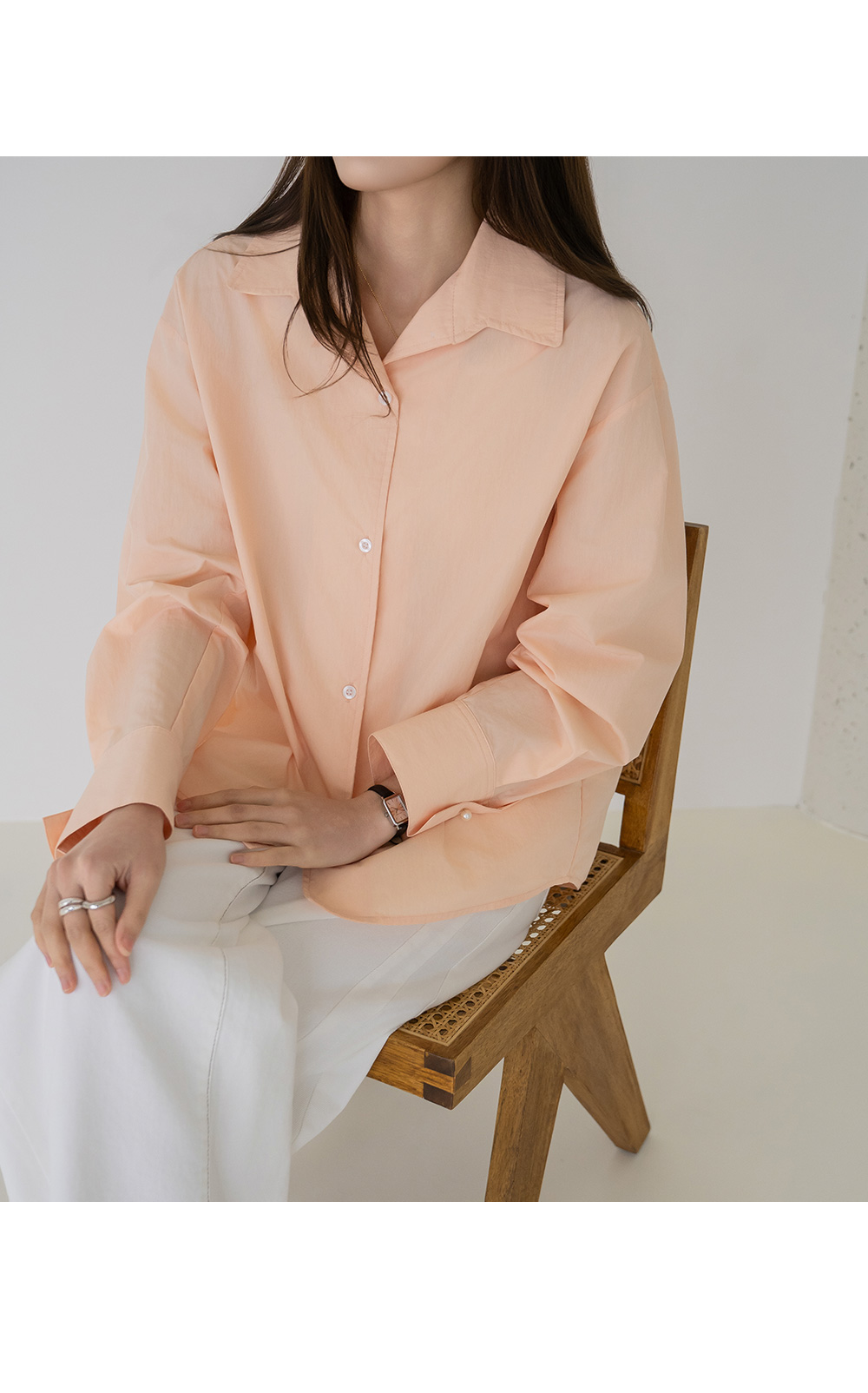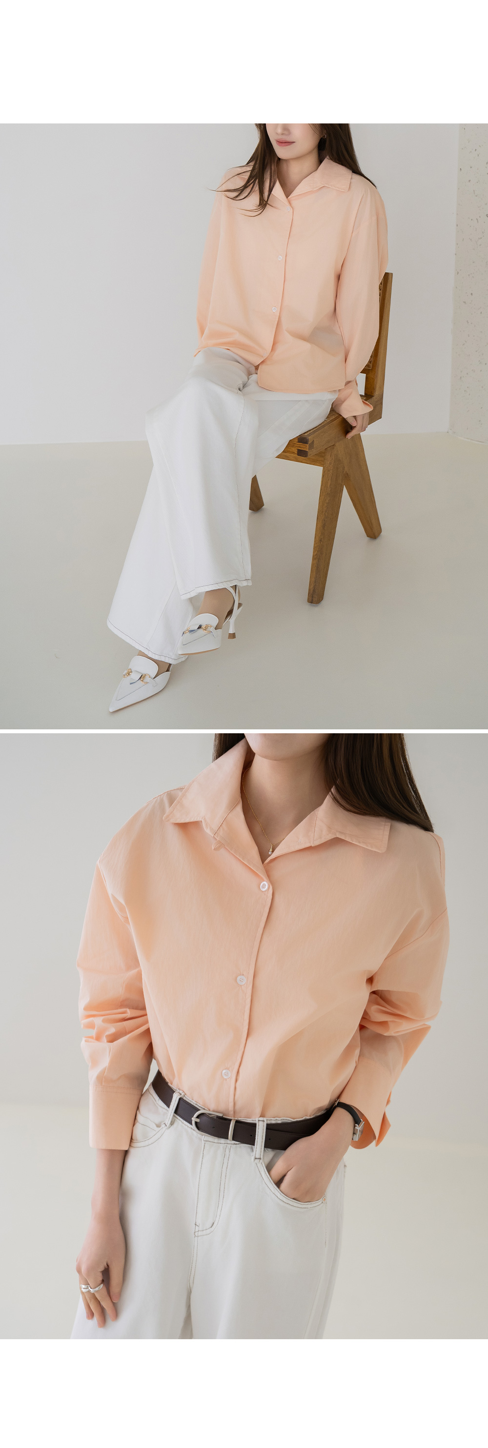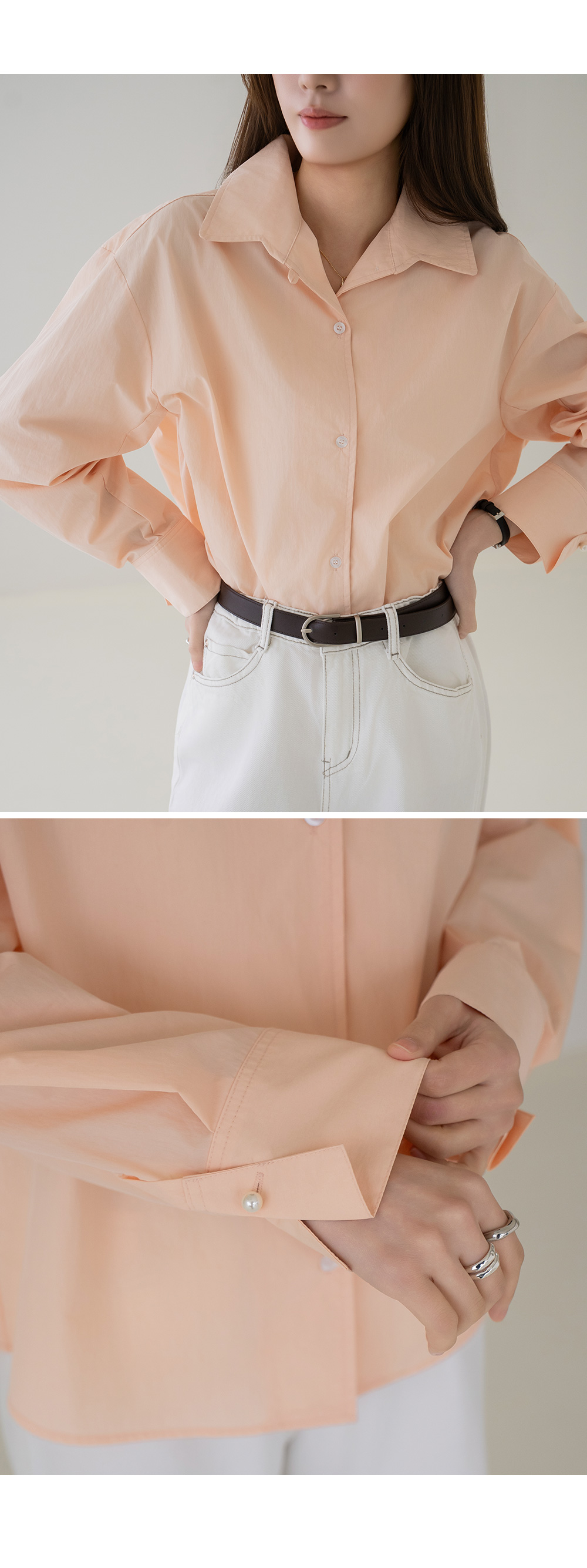 • [Modern Basic] May Pearl Button Overfit Shirt - BL2603014