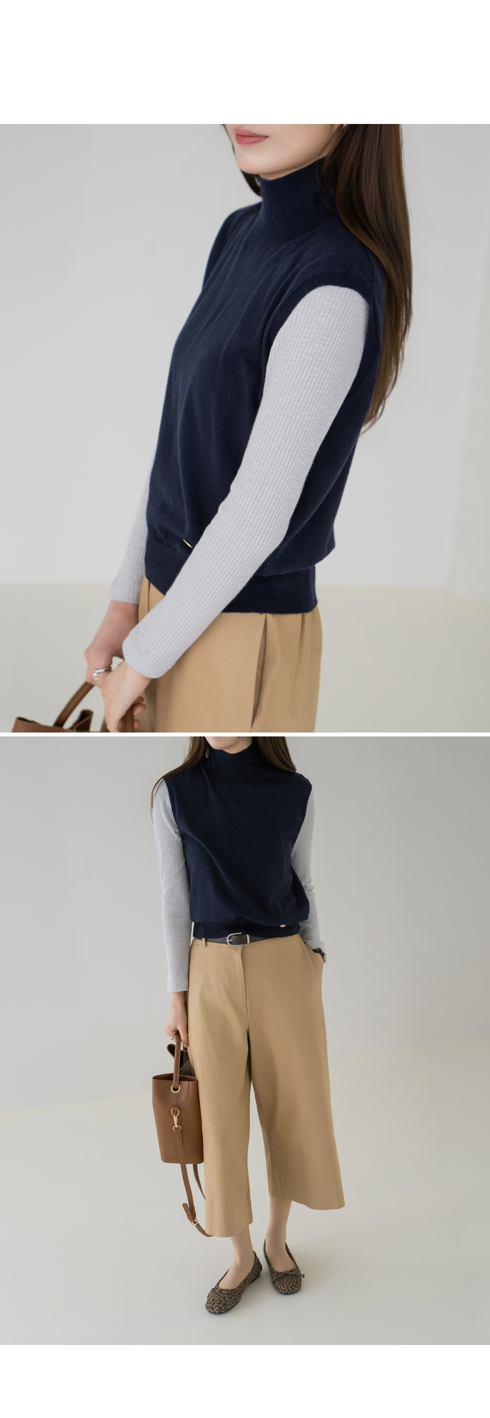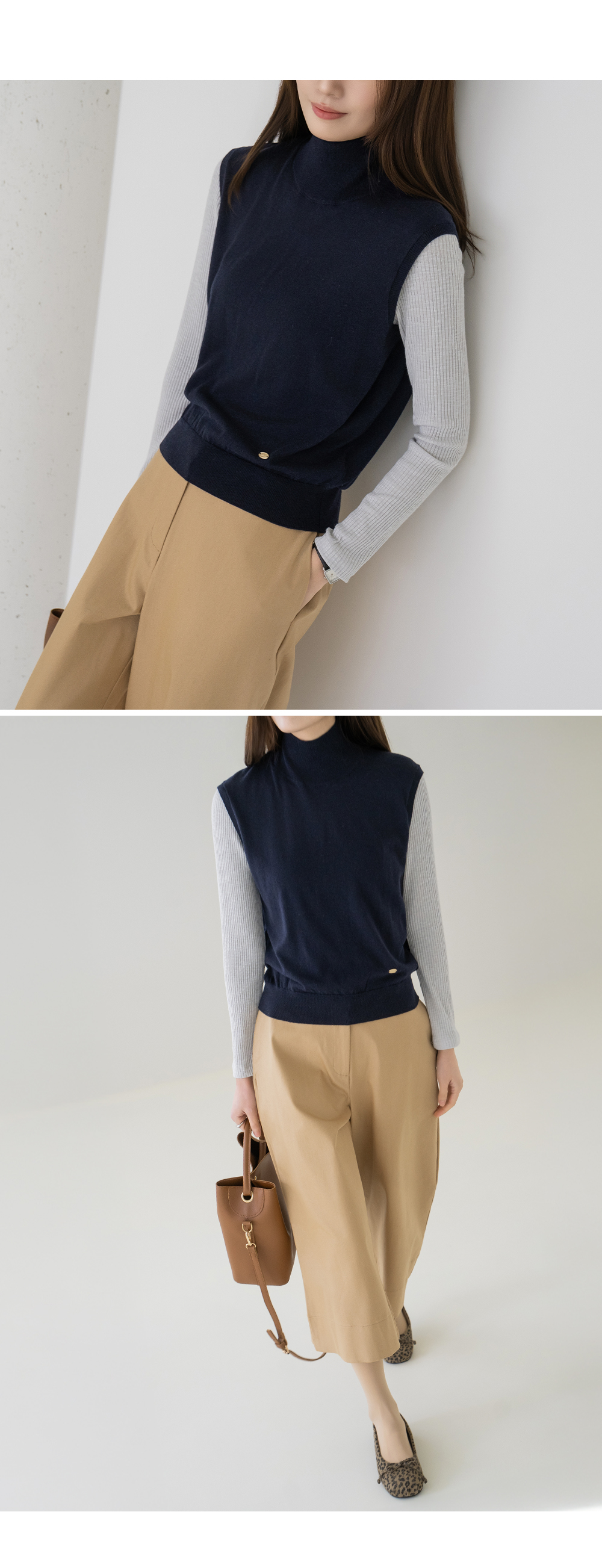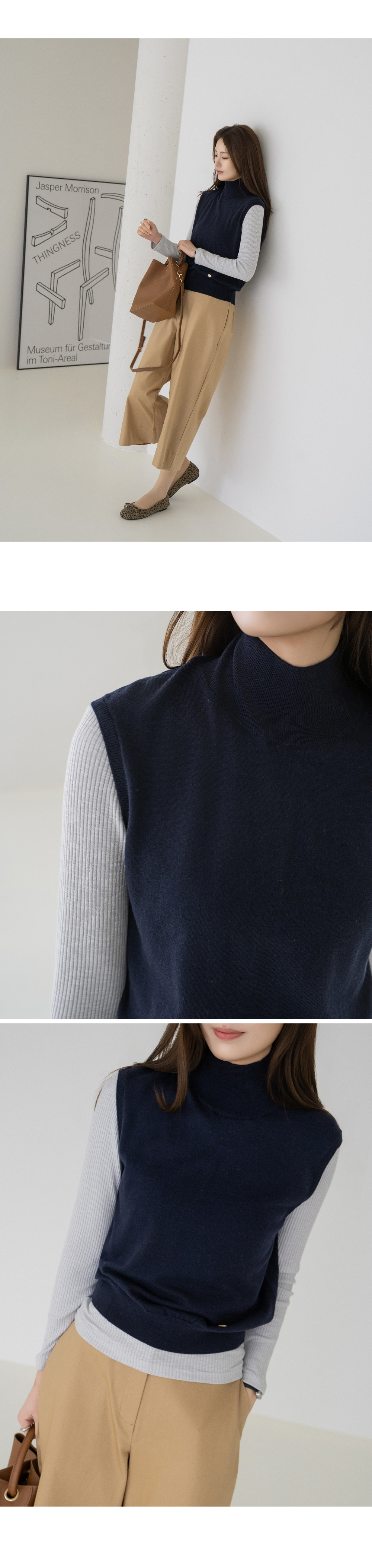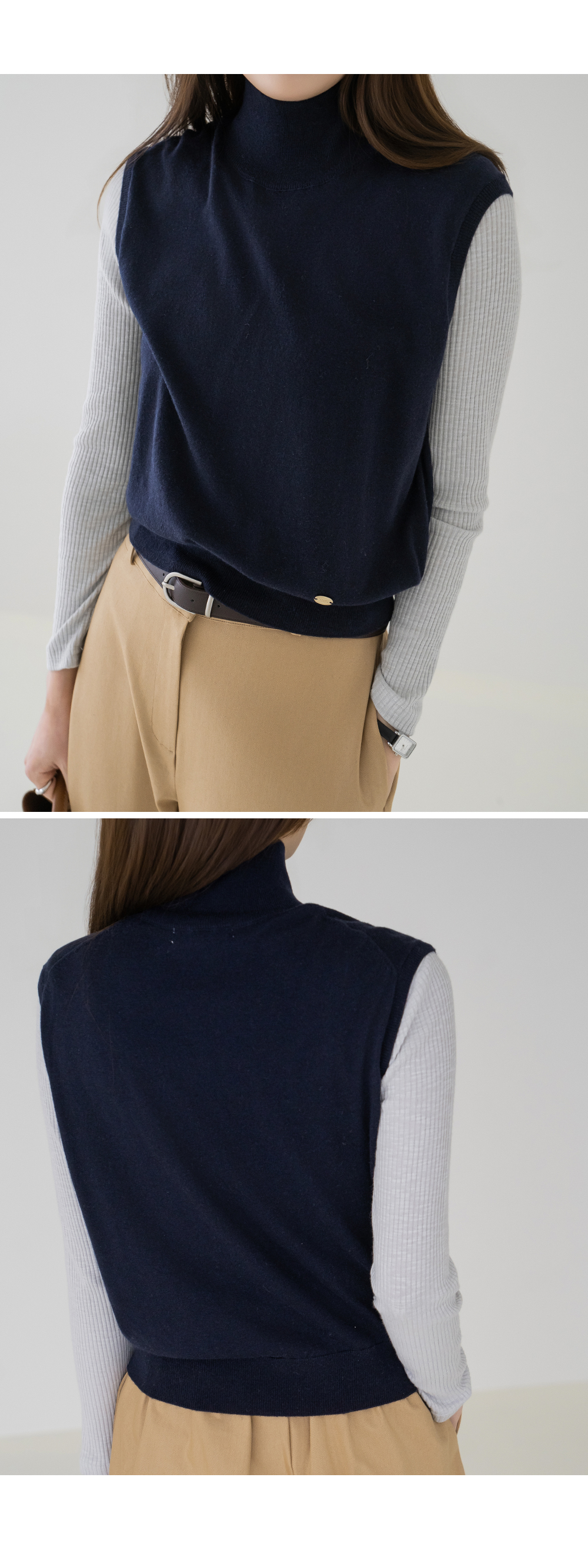 • [Modern Basic] Elegant Half-Mock Knit Vest - VE2603005 -