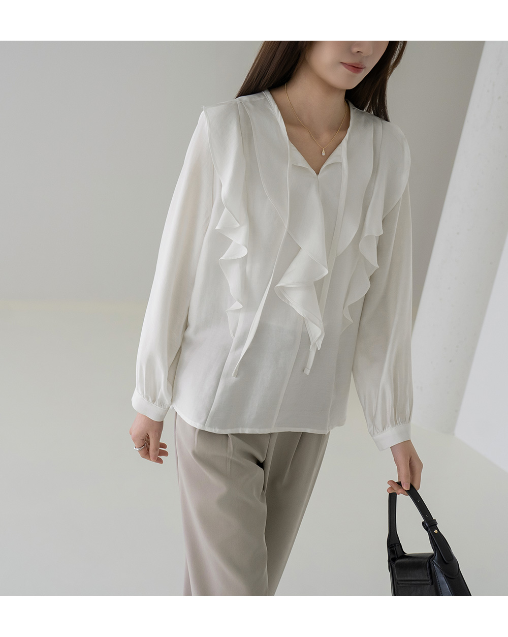 • [Modern Basic] Romance Frill Strap Blouse - BL2603013 -