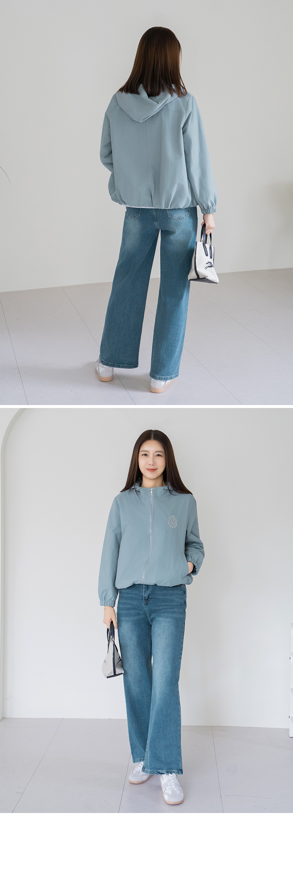 데님제품 및 염색한 원단제품은 물빠짐 현상이 일어날 수 있으므로 반드시 단독세탁 해 주셔야 합니다.