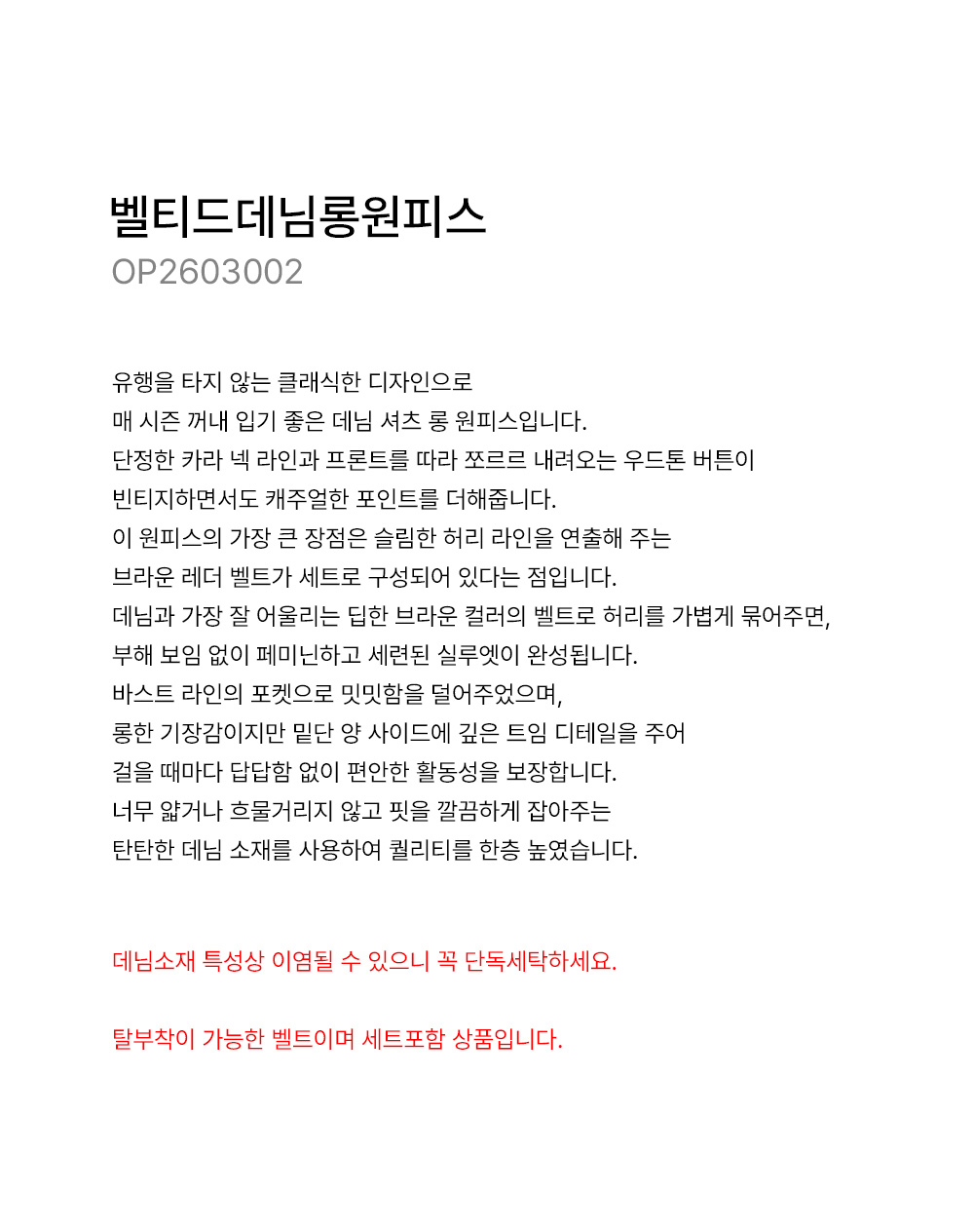 - 데님소재 특성상 이염될 수 있으니 꼭 단독세탁하세요. 탈부착이 가능한 벨트이며 세트포함 상품입니다.