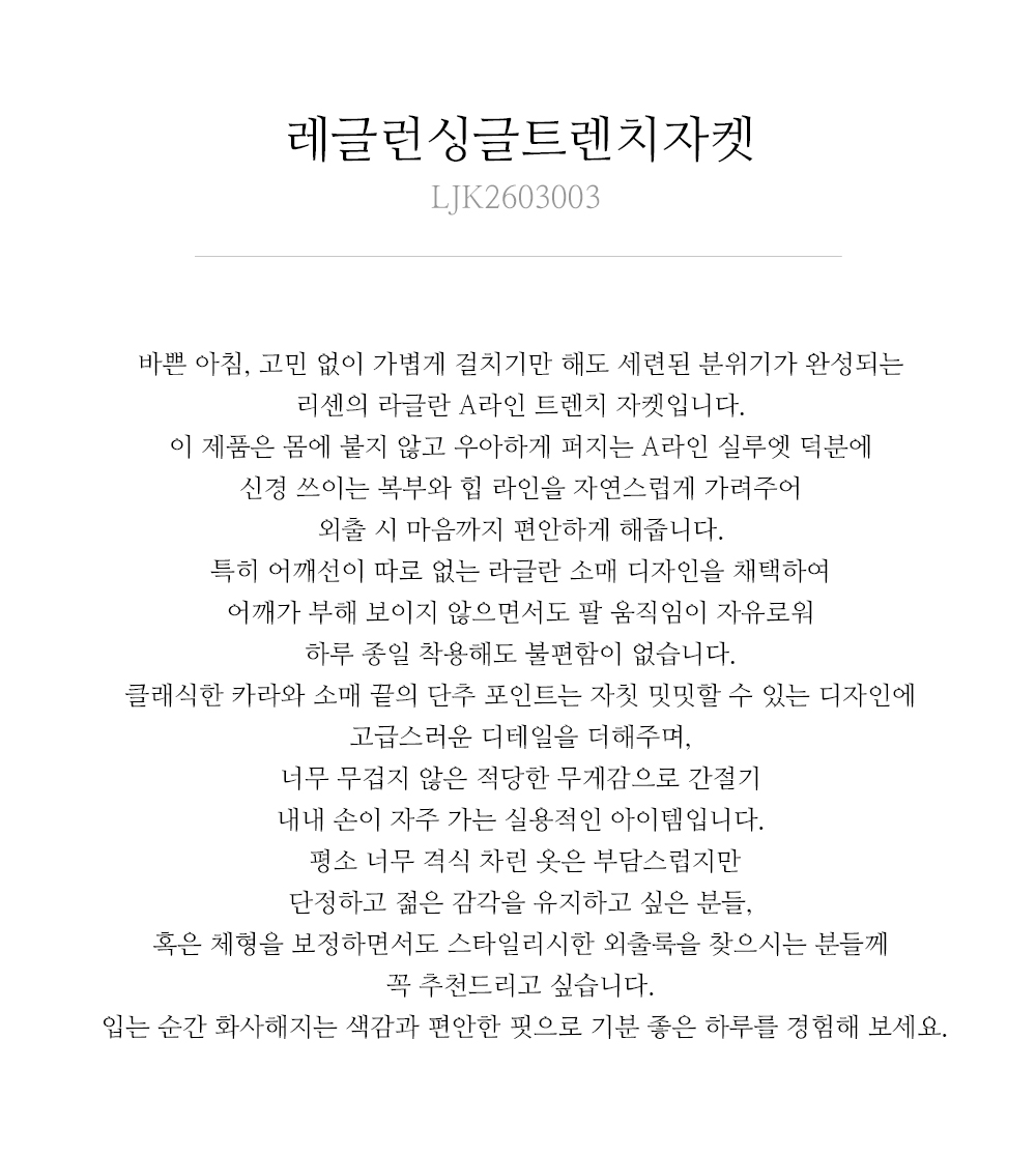 • [Risen] Raglan Single Trench Jacket-LJK2603003-