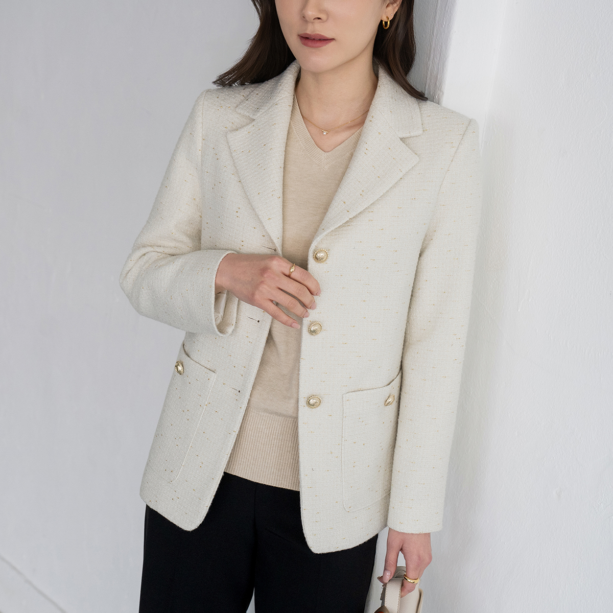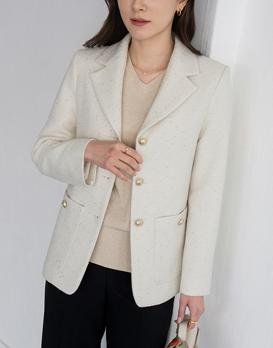 • [Modern Basic] Line Luxury Litweed Jacket-JK2603026-