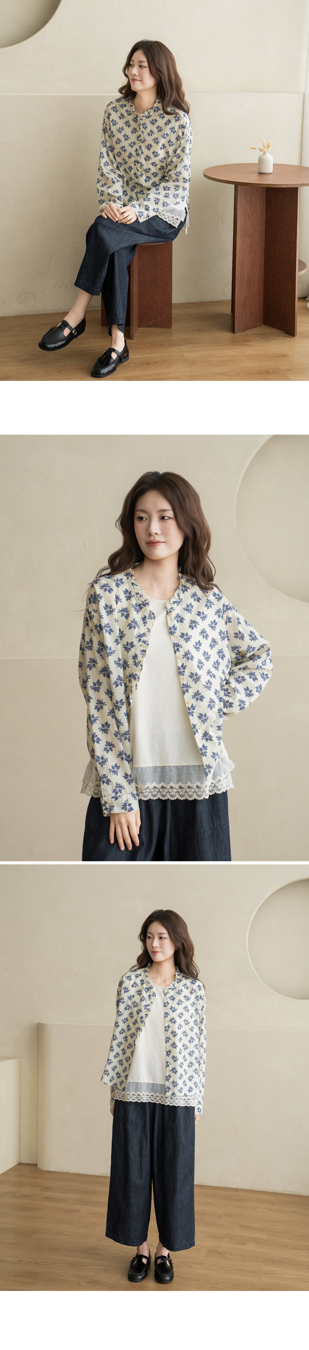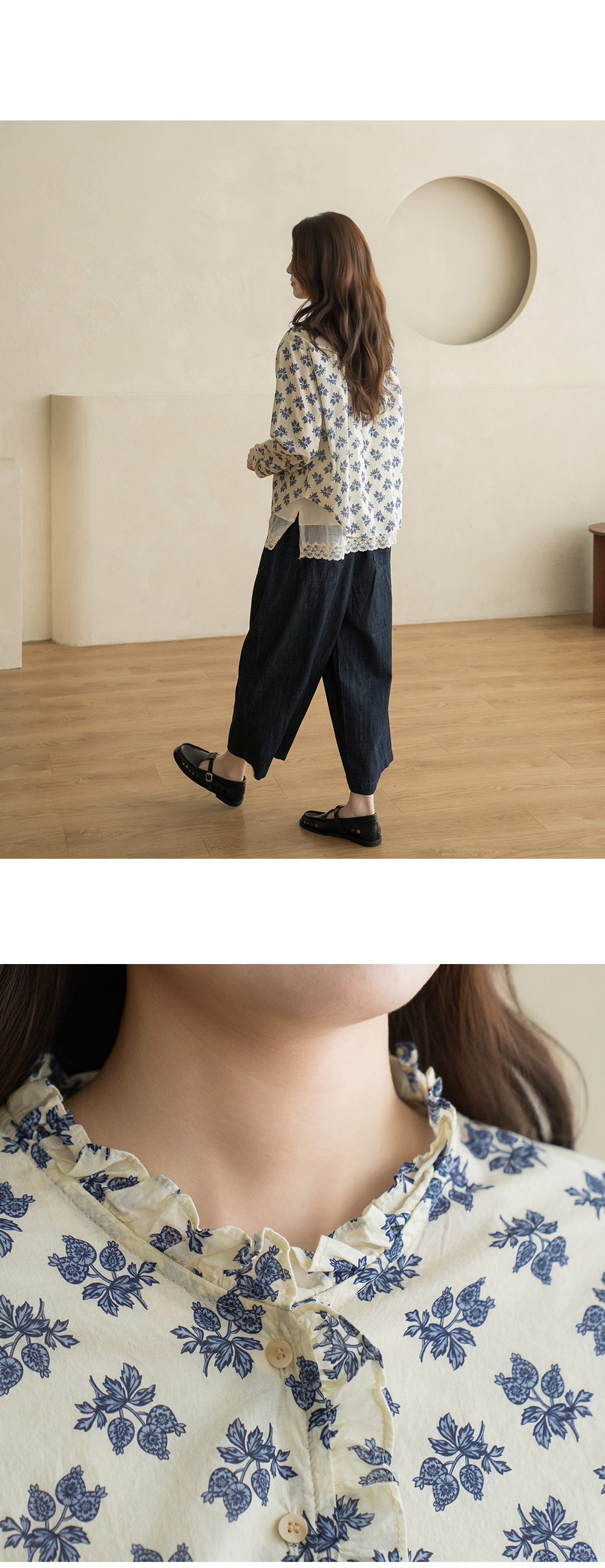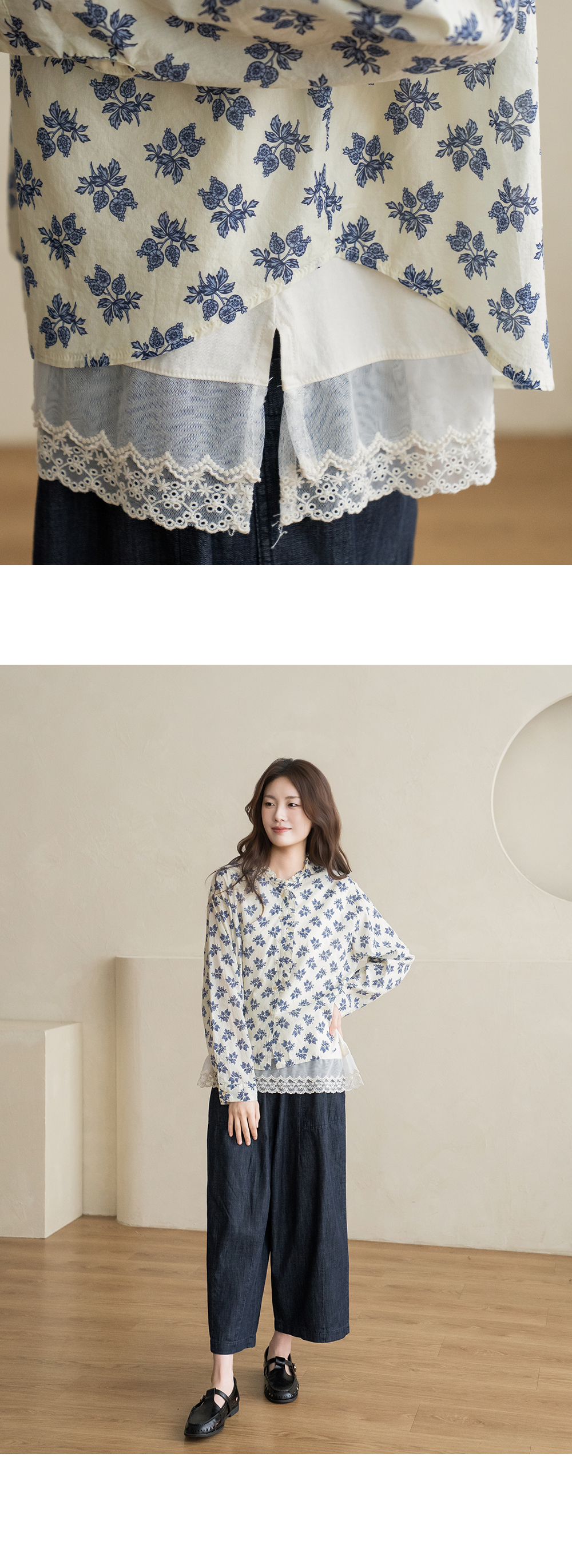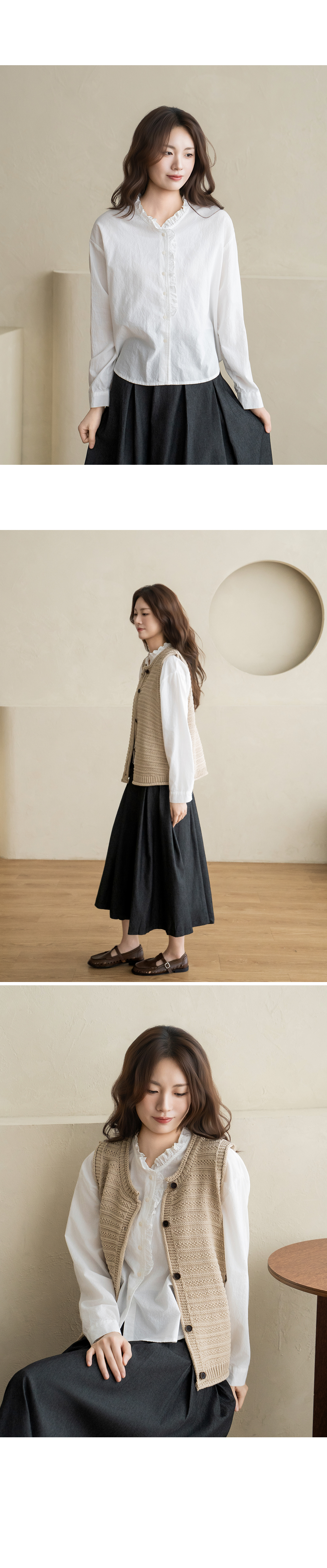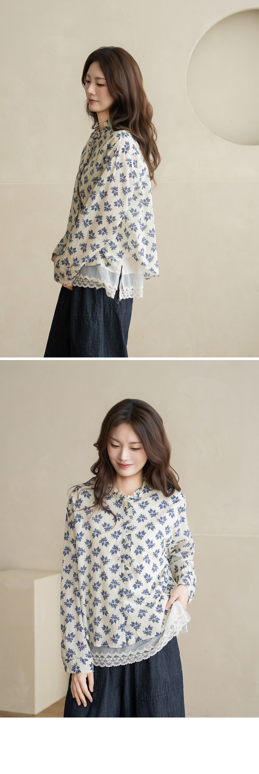 • [Natural Poem] Line Frill Neck Blouse-BL2603033-