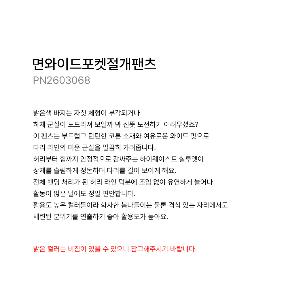 - 밝은 컬러는 비침이 있을 수 있으니 참고해주시기 바랍니다.