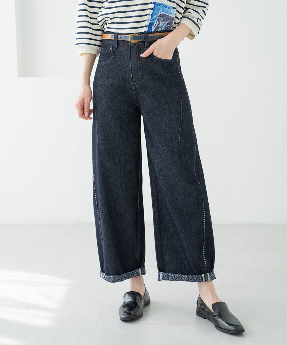 • Jacquard Stitch Denim Pants-PN2603073-