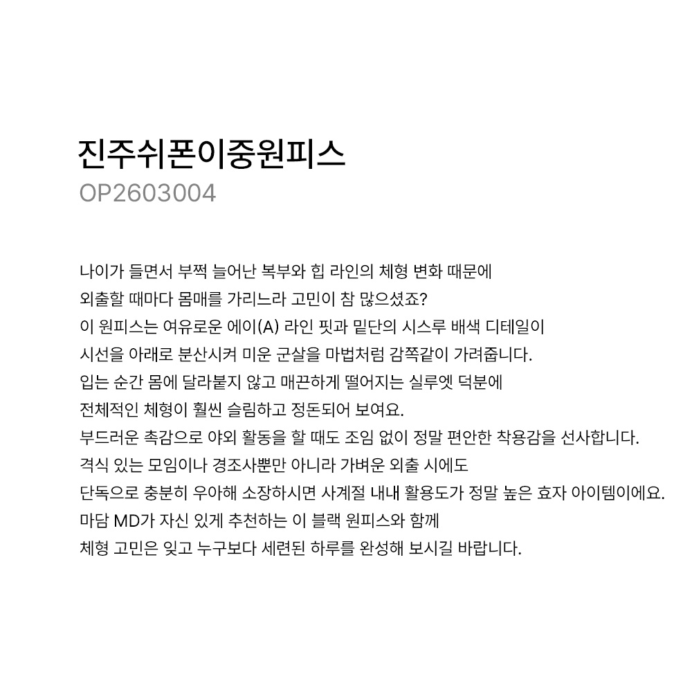 마담4060의 모든 의류 제품은 처음 1~2회 드라이크리닝을 권장합니다.
