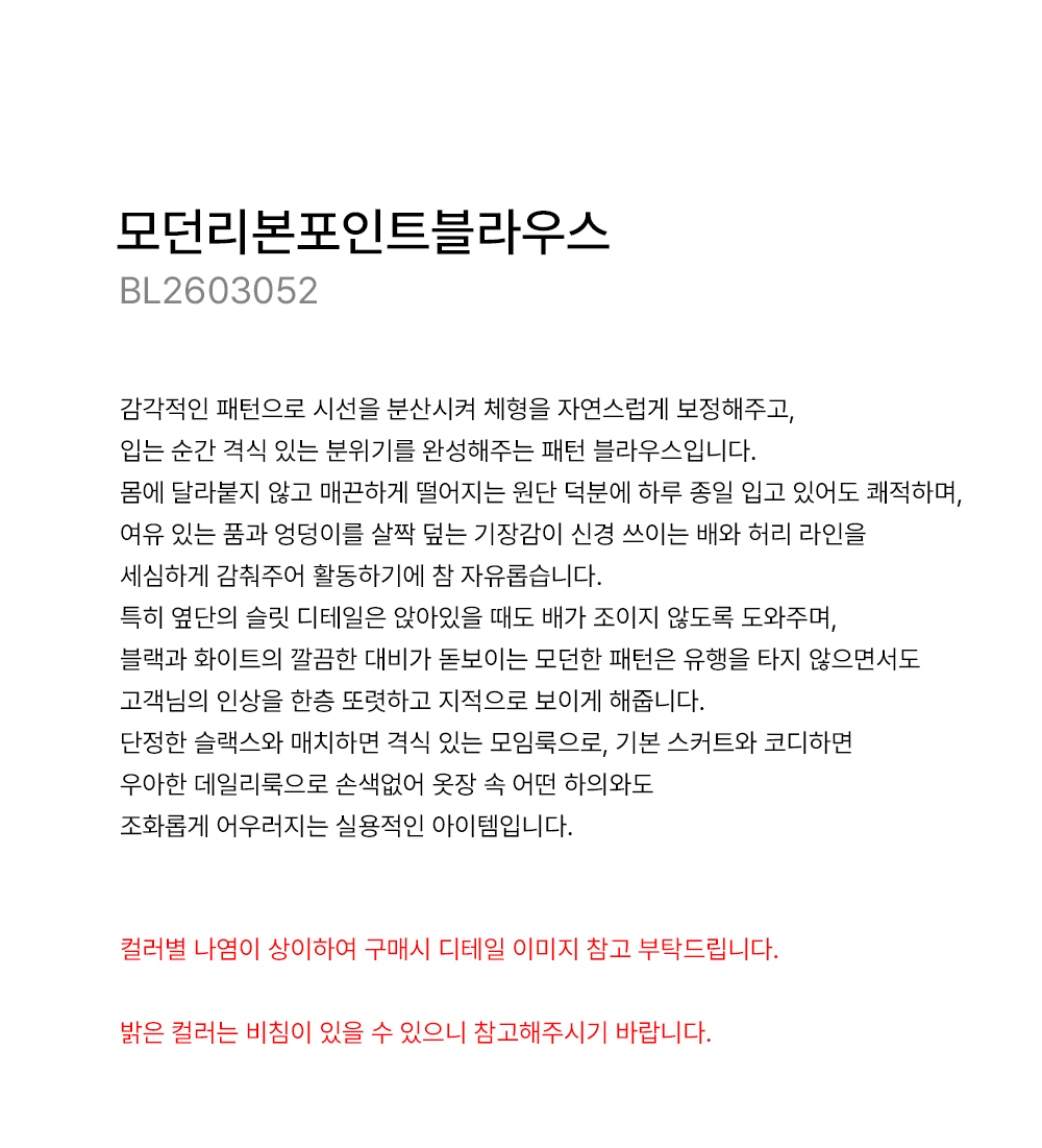 마담4060의 모든 의류 제품은 처음 1~2회 드라이크리닝을 권장합니다.