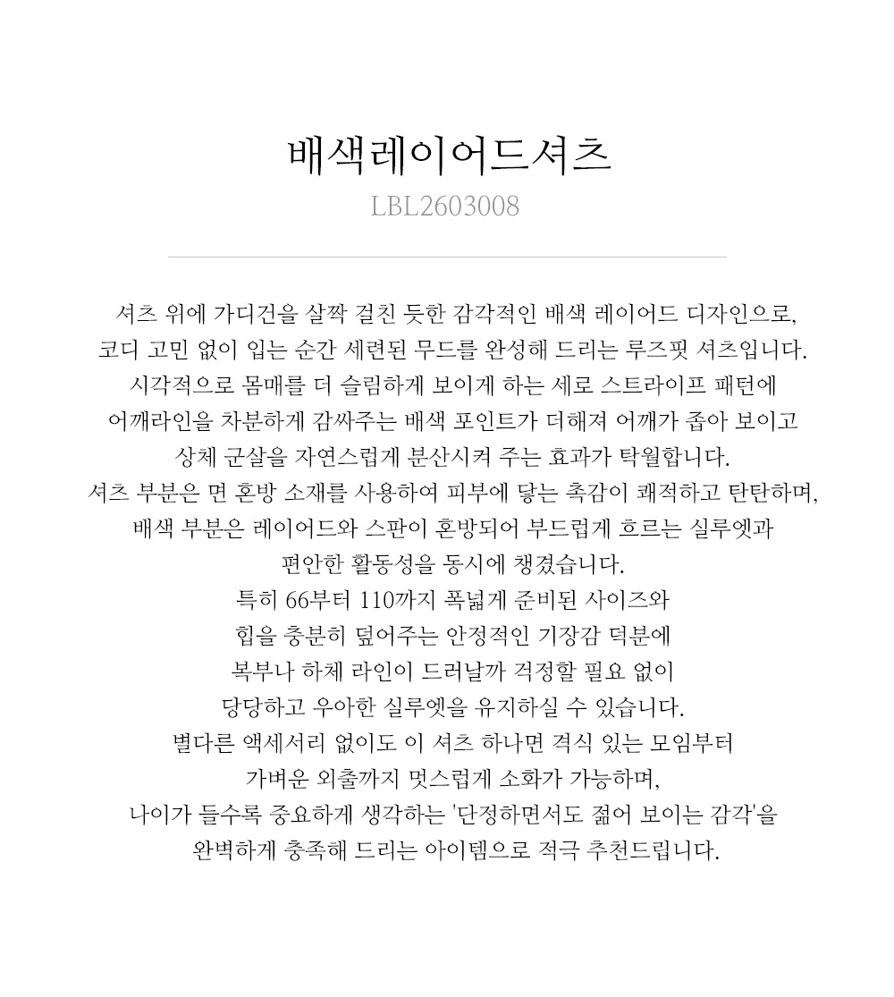 마담4060의 모든 의류 제품은 처음 1~2회 드라이크리닝을 권장합니다.